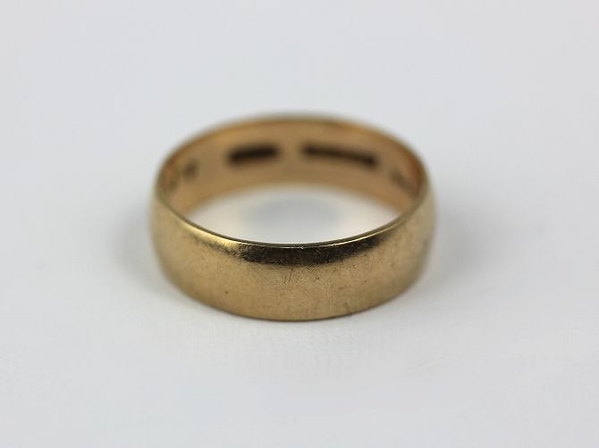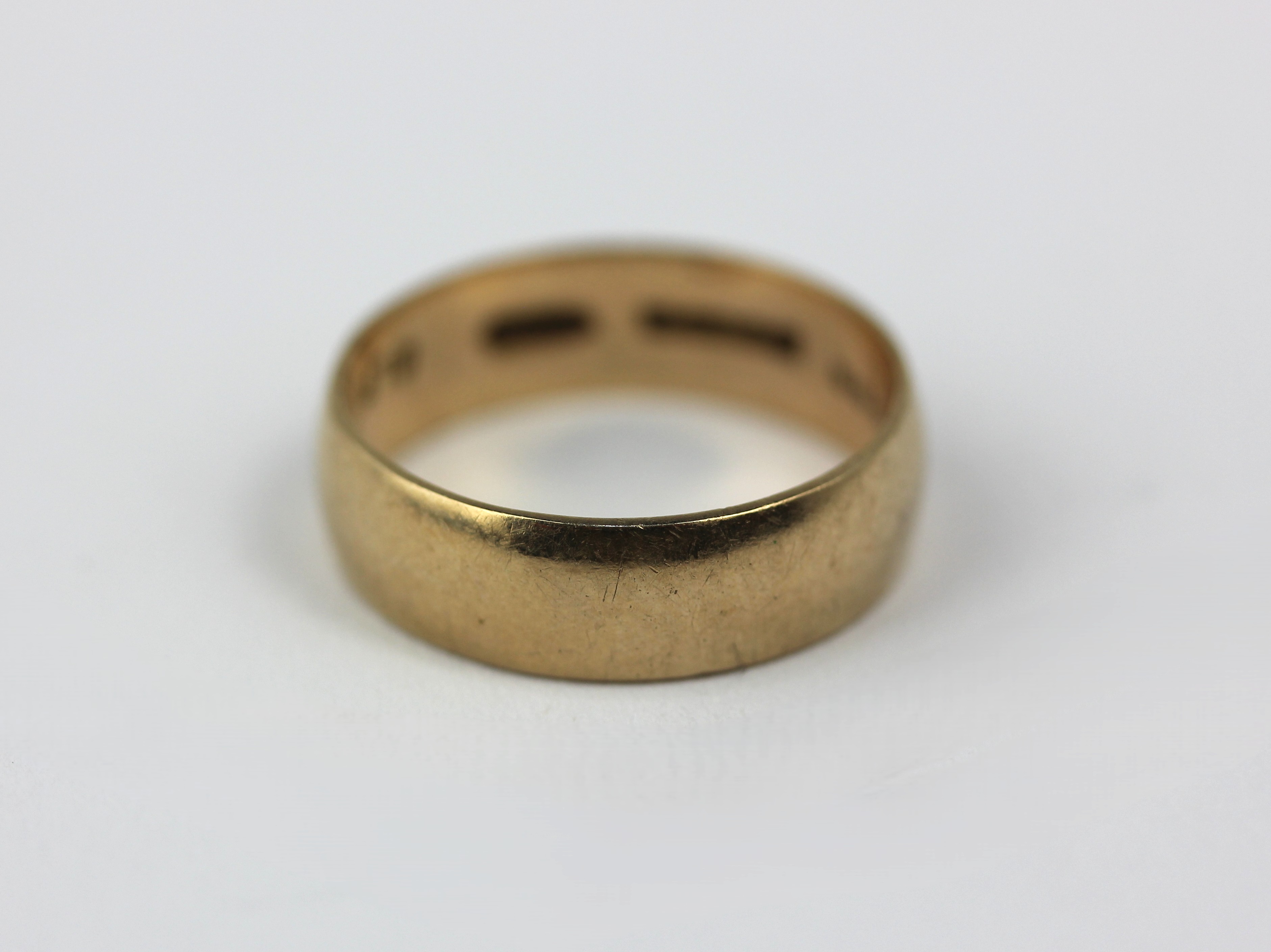 A 9ct gold plain wedding band, Birmingham 1979, size L 1/2, 3g
