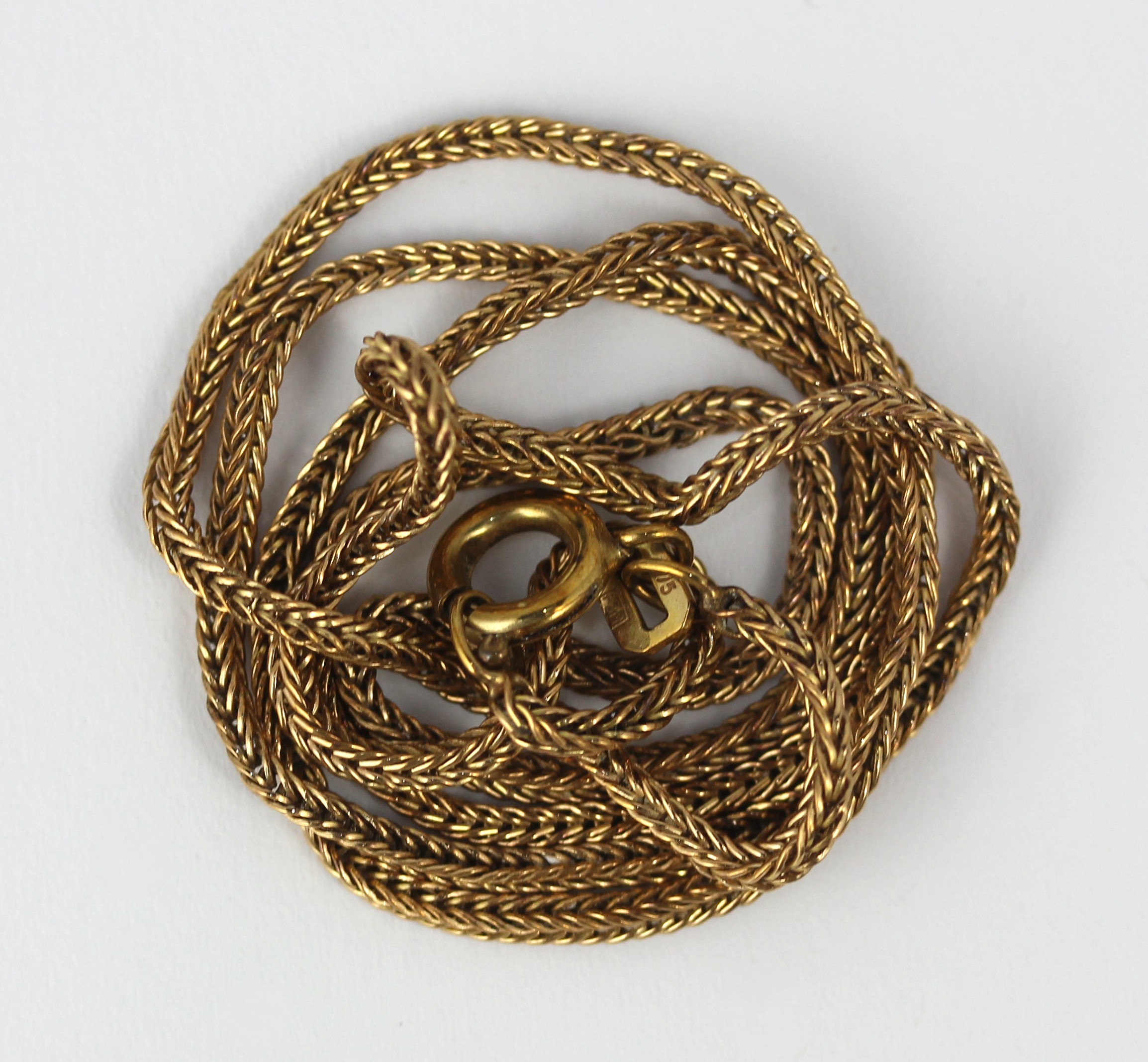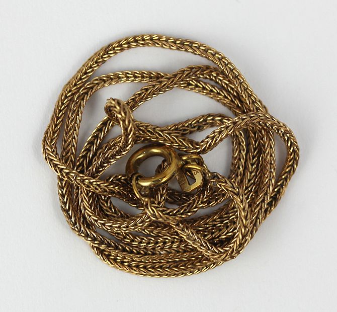 A 9ct gold foxtail link neck chain on a boltring clasp weight 4.5g