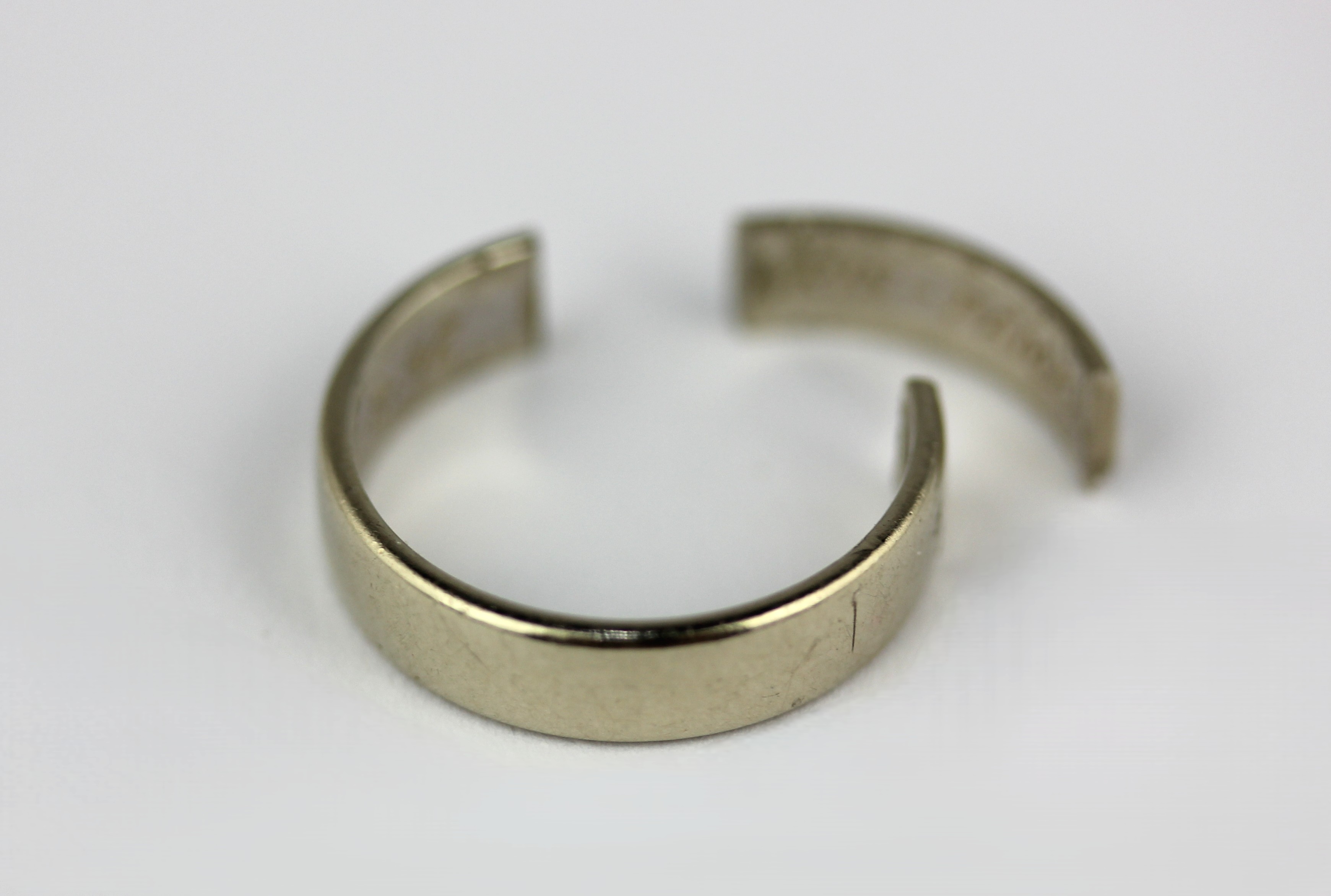 An 18ct white gold wedding ring (cut into two sections) 3.4g
