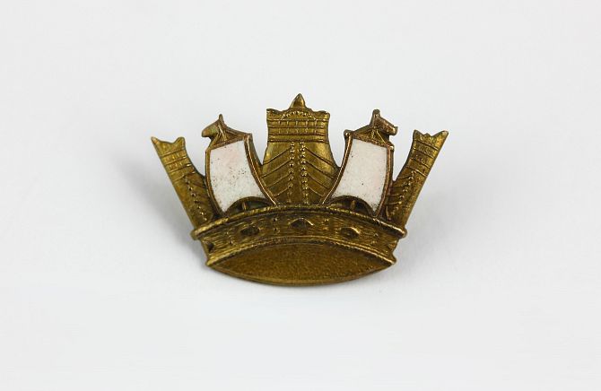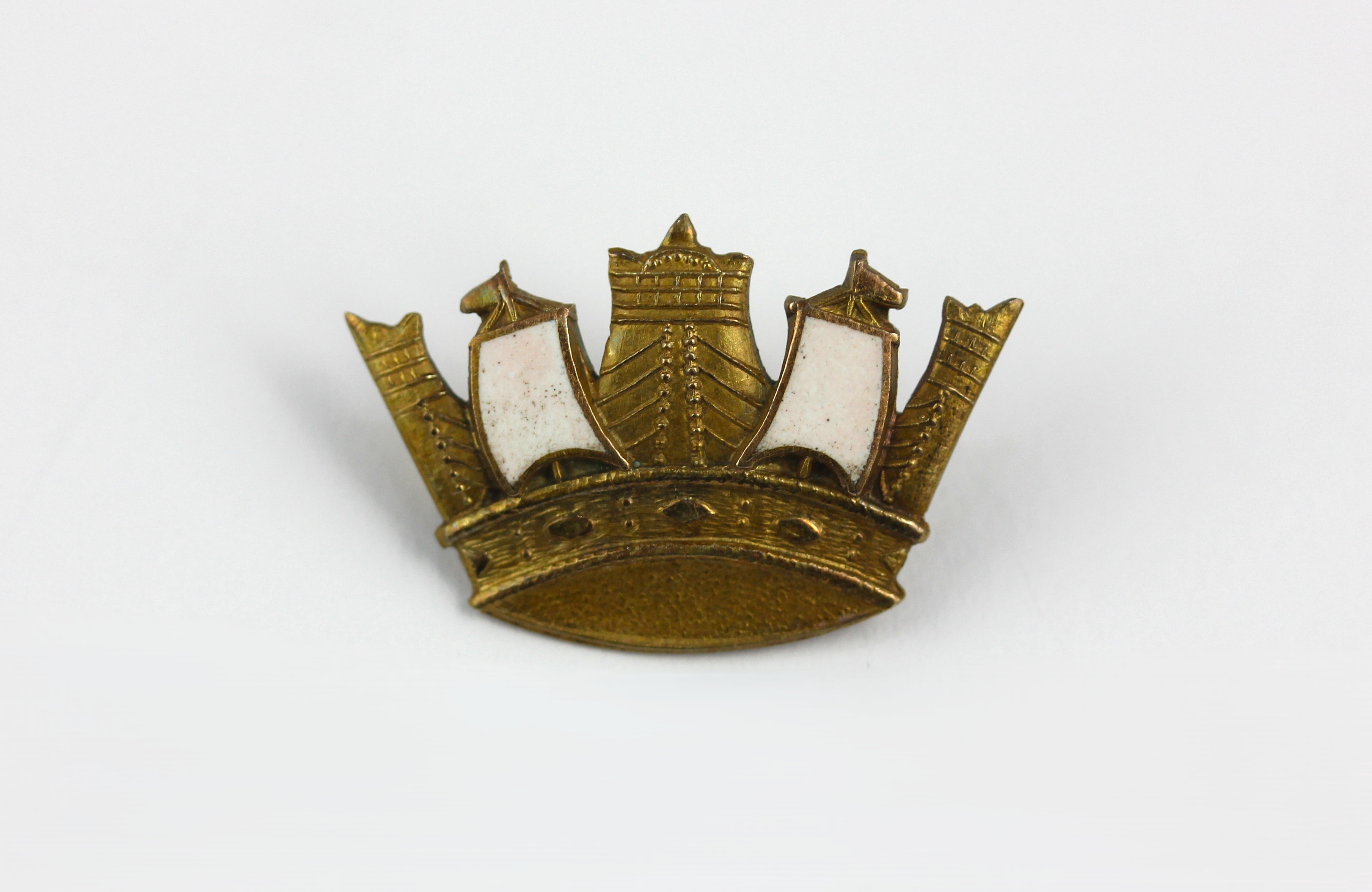 A gold and white enamelled brooch designed as a Naval Crown, detailed 10k Mappin, gross weight 1.9 gms