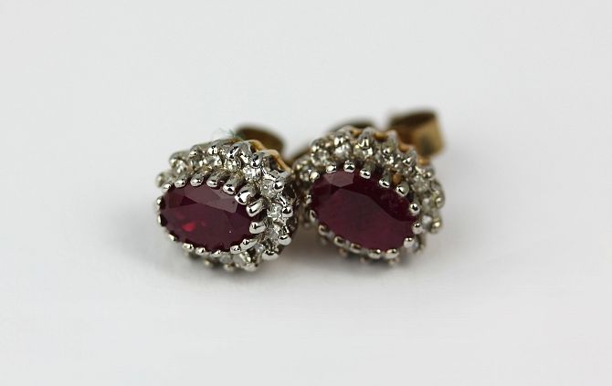 A pair of 9ct gold, ruby and diamond oval cluster earstuds with post and butterfly fittings gross weight 2.4g