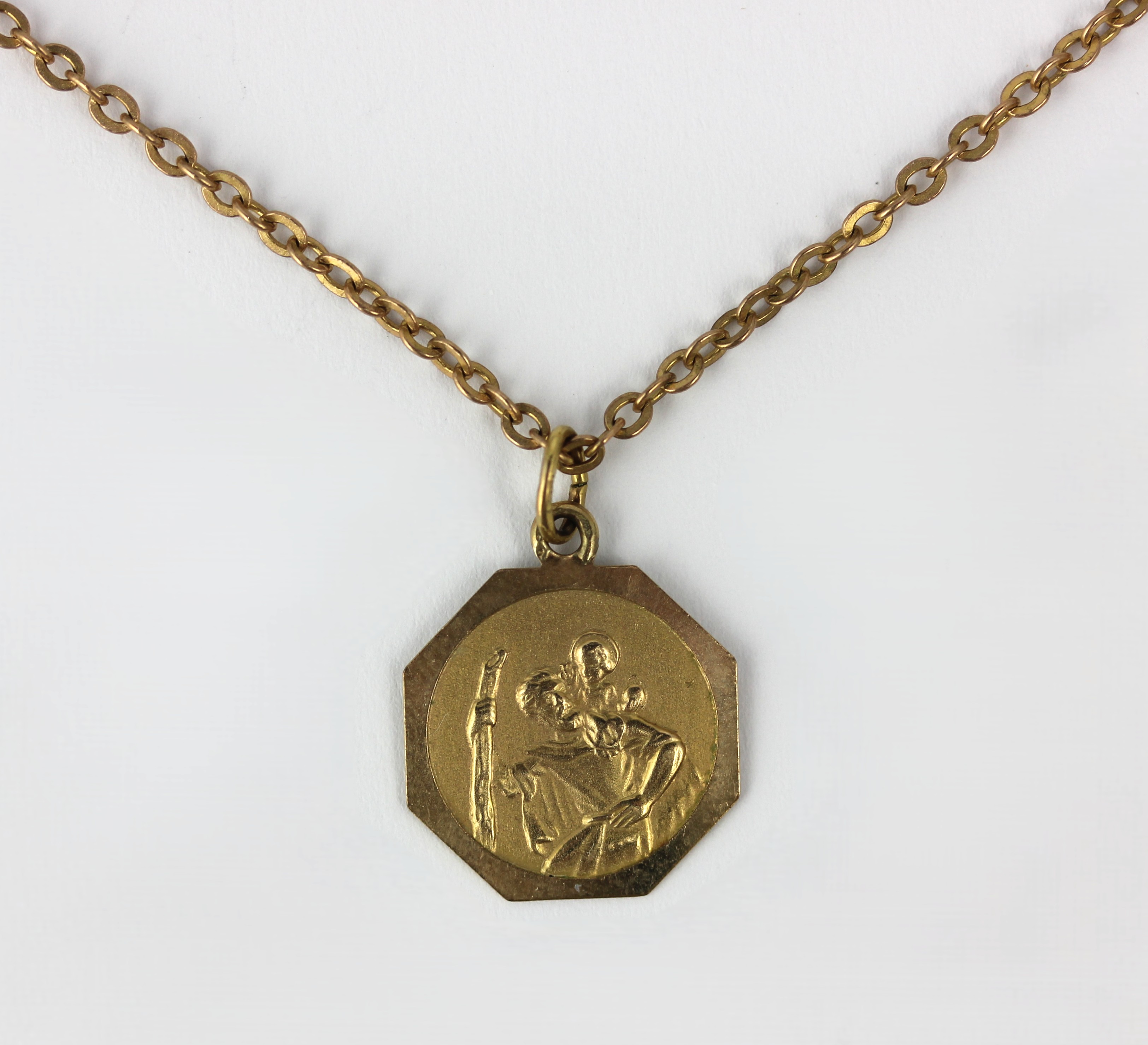 A 9ct gold octagonal St Christopher pendant with a 9 carat gold neck chain weight 4.4g