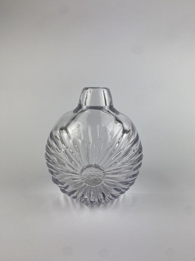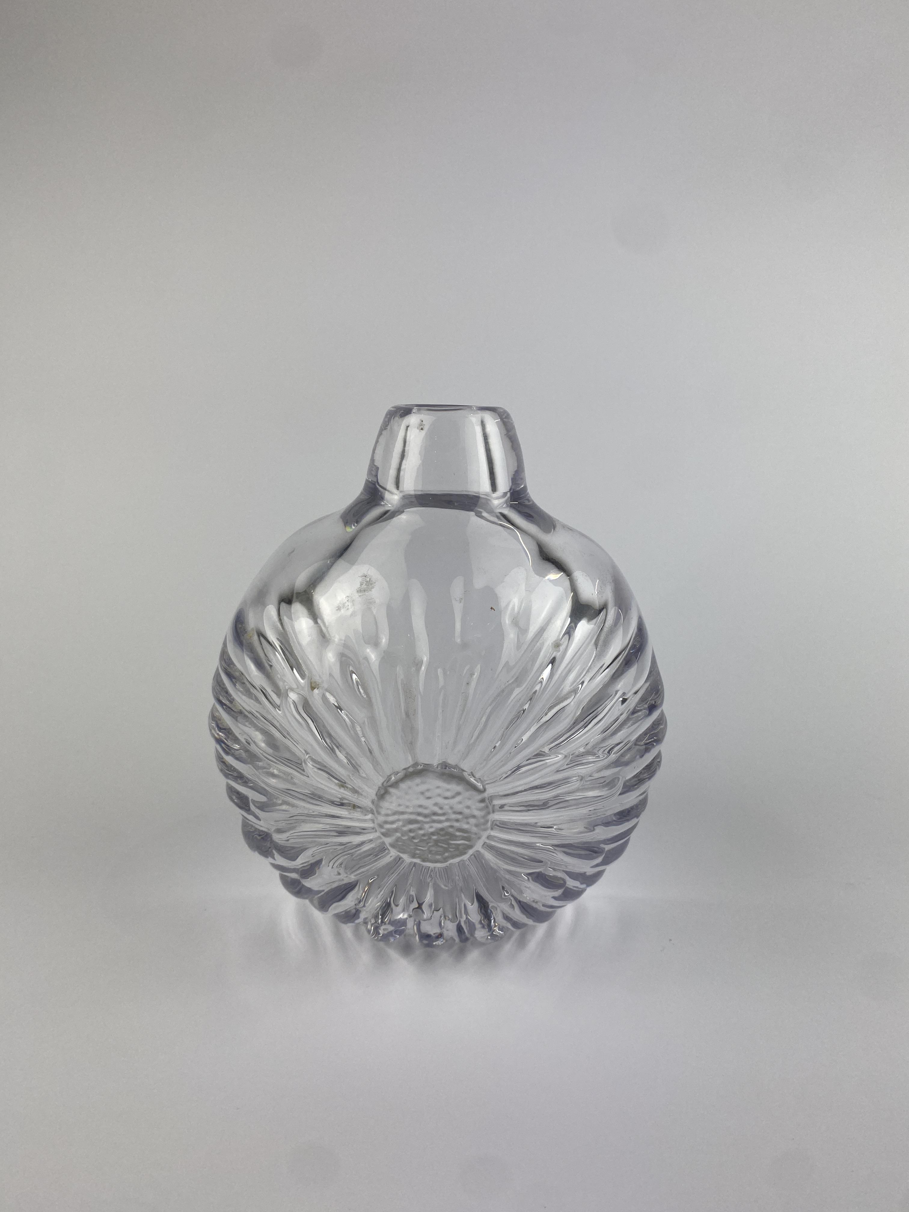 Attributed to Helena Tynell for Riihimaen Lasi (Finland), a heavy glass vase with sunflower type decoration, 18cm high.