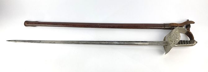 A First World War British Officer's sword and scabbard 106cm long including hand...