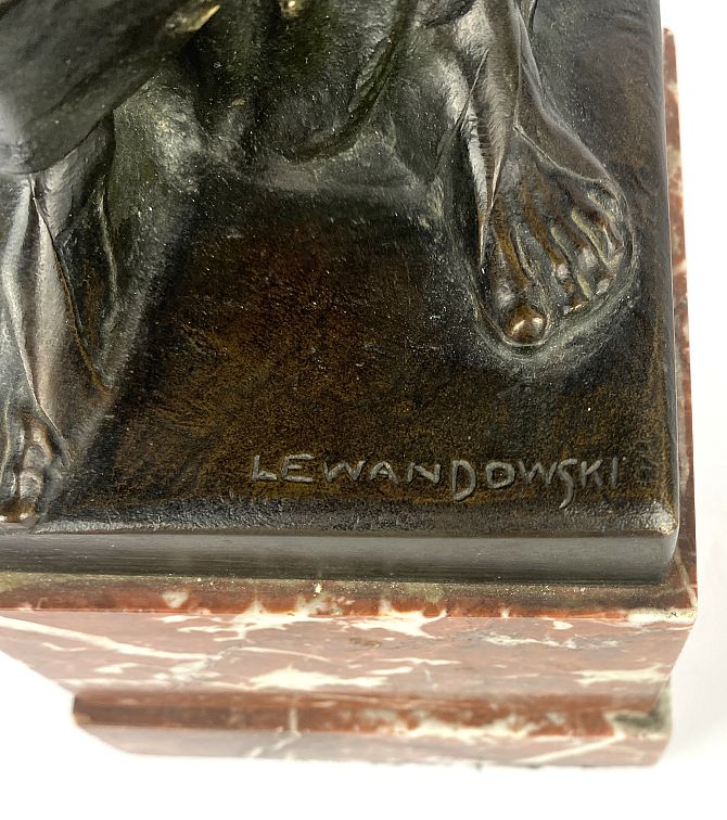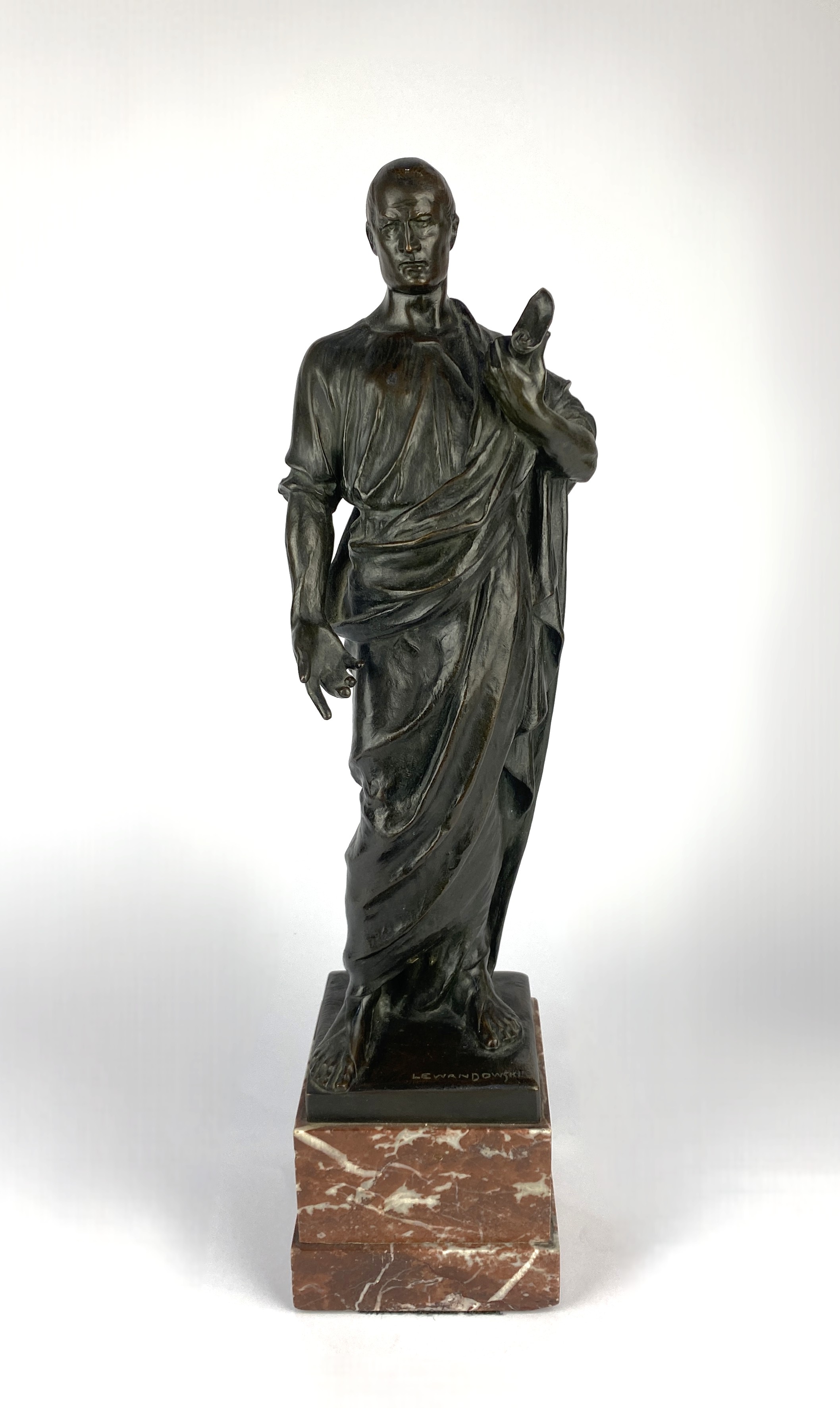 Stanislaw Lewandowski (Polish, 1859-1940), bronze sculpture 'Roman Senator', on marble plinth base, combined height 44.5cm.