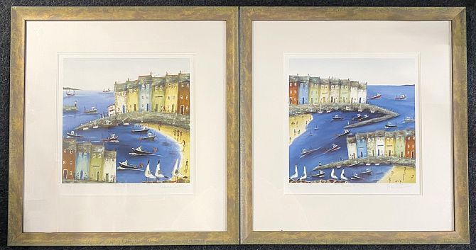 Rebecca Lardner (British, b.1971), 'Anchors Away 1' and 'Anchors Away 2', a pair of pencil signed limited edition prints, numbered 63/195, 30cm by 30cm, framed.