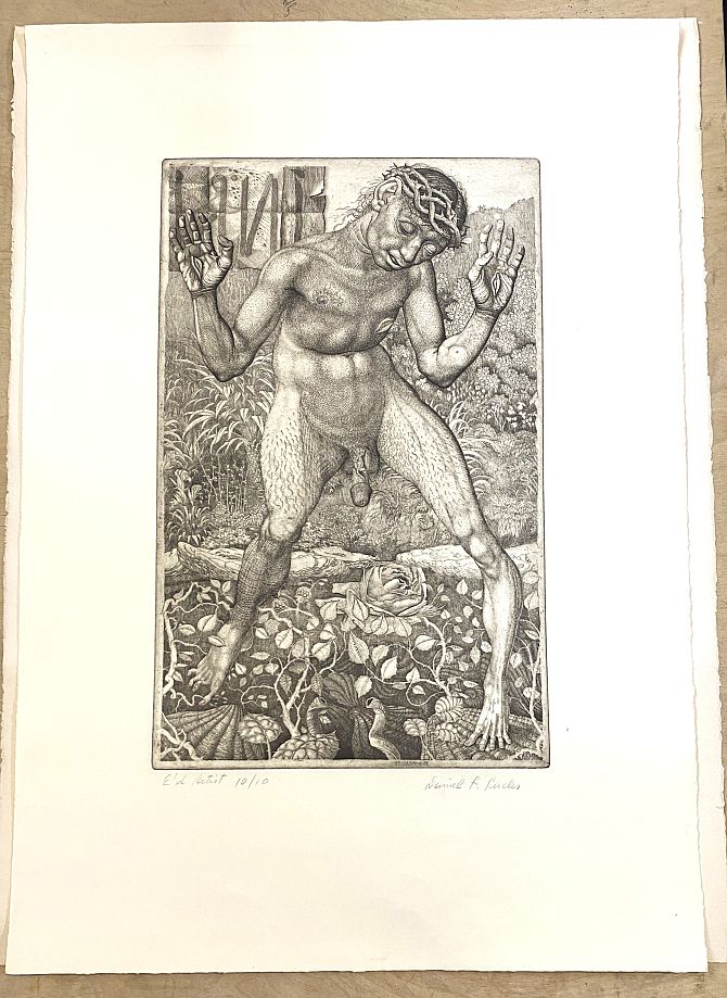 Daniel Friedemann Fuchs (Austrian, b.1950), 'The Man of Sorrows / The Man of Passion', pencil signed limited etching, numbered 10/10, also annotated ' E'd Artist', image 50cm by 30cm, unframed.