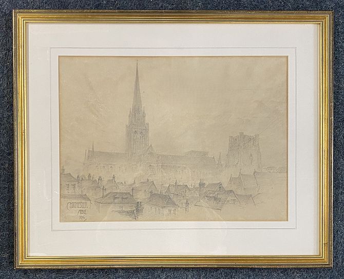 Eric Gill (1882-1940), Chichester cathedral, pencil on paper, incribed, initialled and dated 1900, 30.5cm by 42cm (ARR)