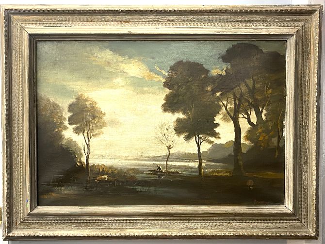 Philip Hugh Padwick (1876-1958), figure boating on a lake, oil on canvas, signed, 90cm by 60cm