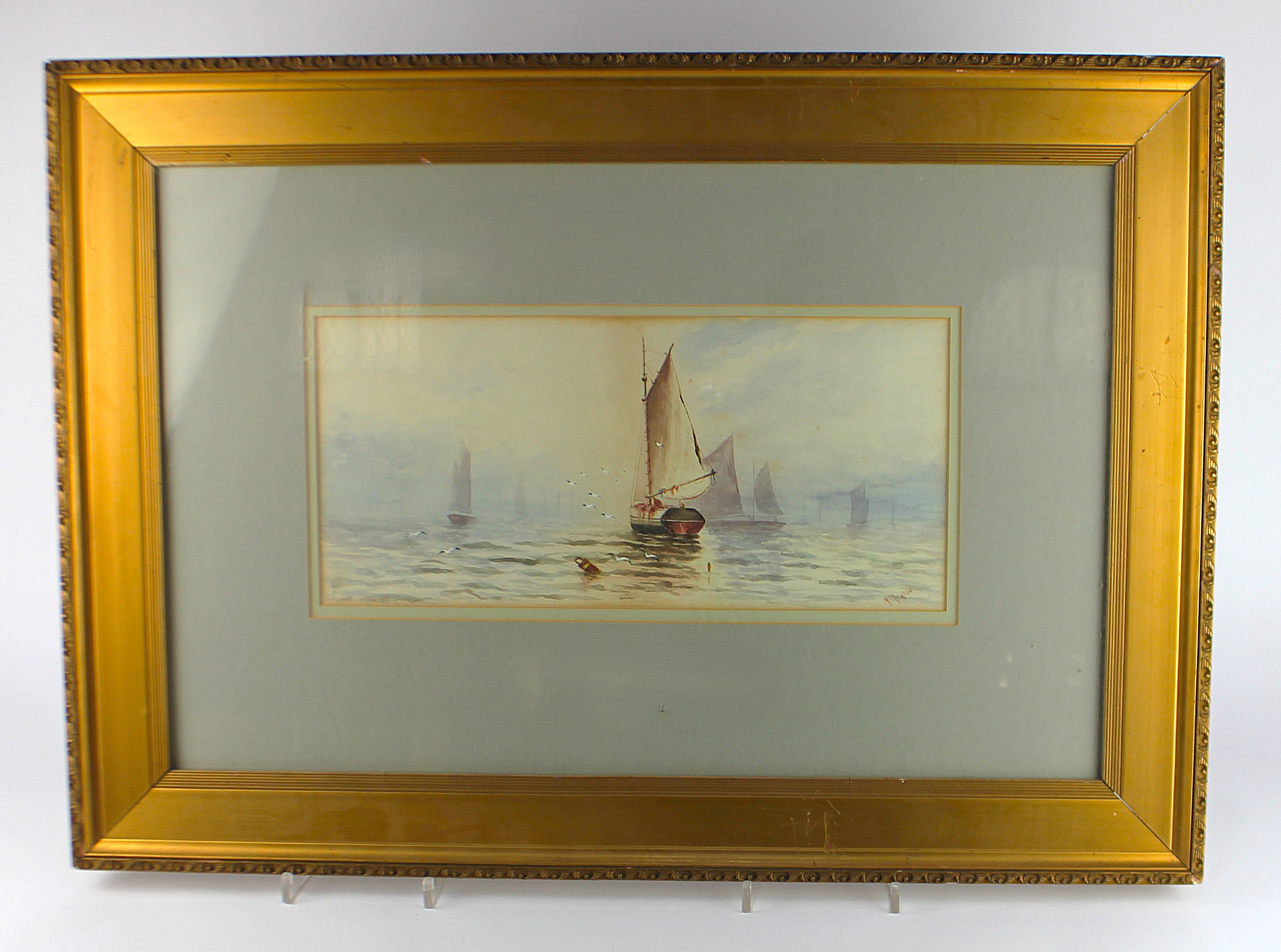 M Preston (late 19th / early 20th century), 'Sunshine and Fog off Scarborough', watercolour, signed and titled. 18cm by 38cm, framed.
