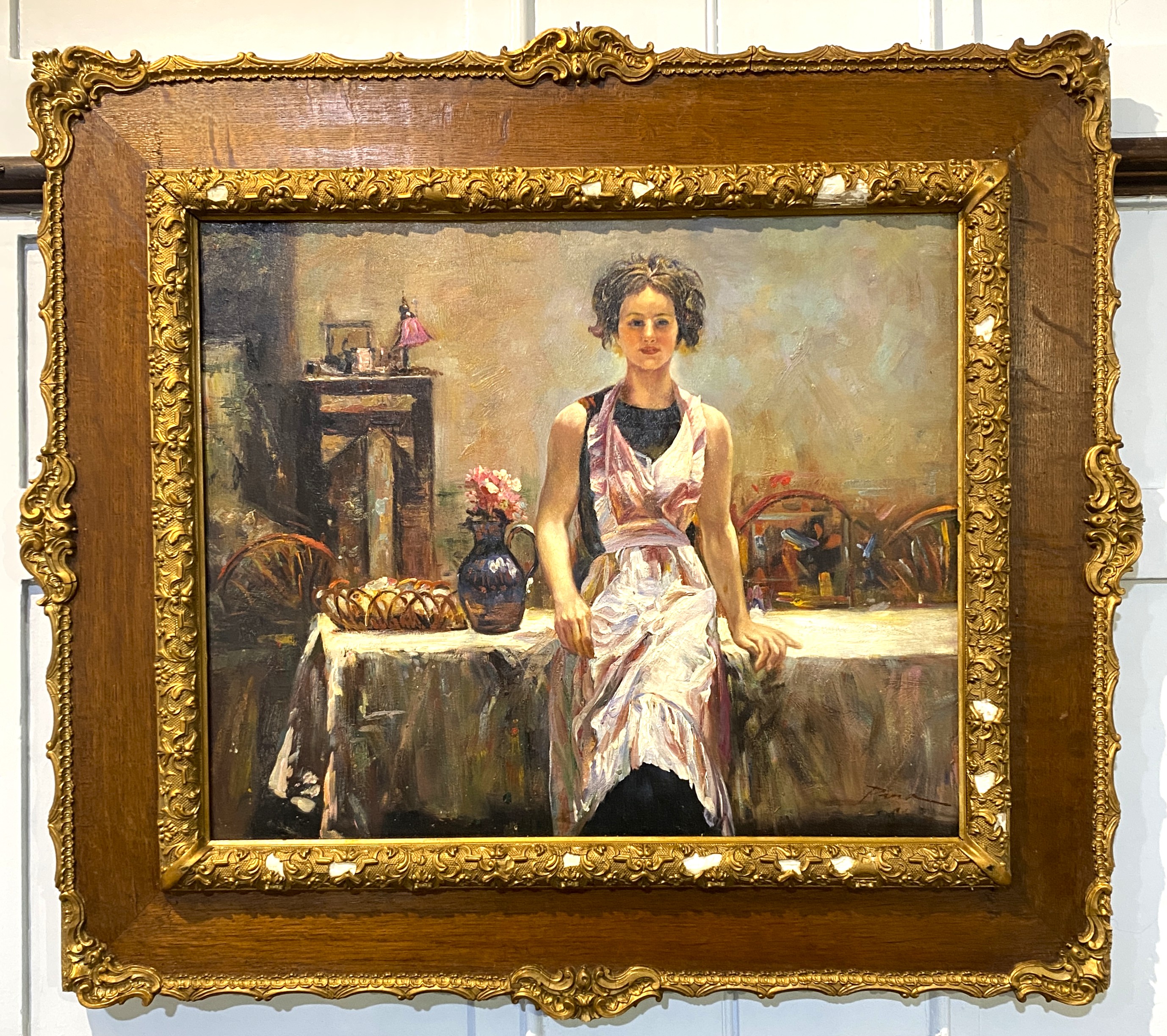 Pino Daeni (Giuseppe Dangelico Daeni ) (Italian/American, 1939 - 2010), 'Evening Thoughts', mixed media, 48cm by 59cm, framed, (af - frame chipped).