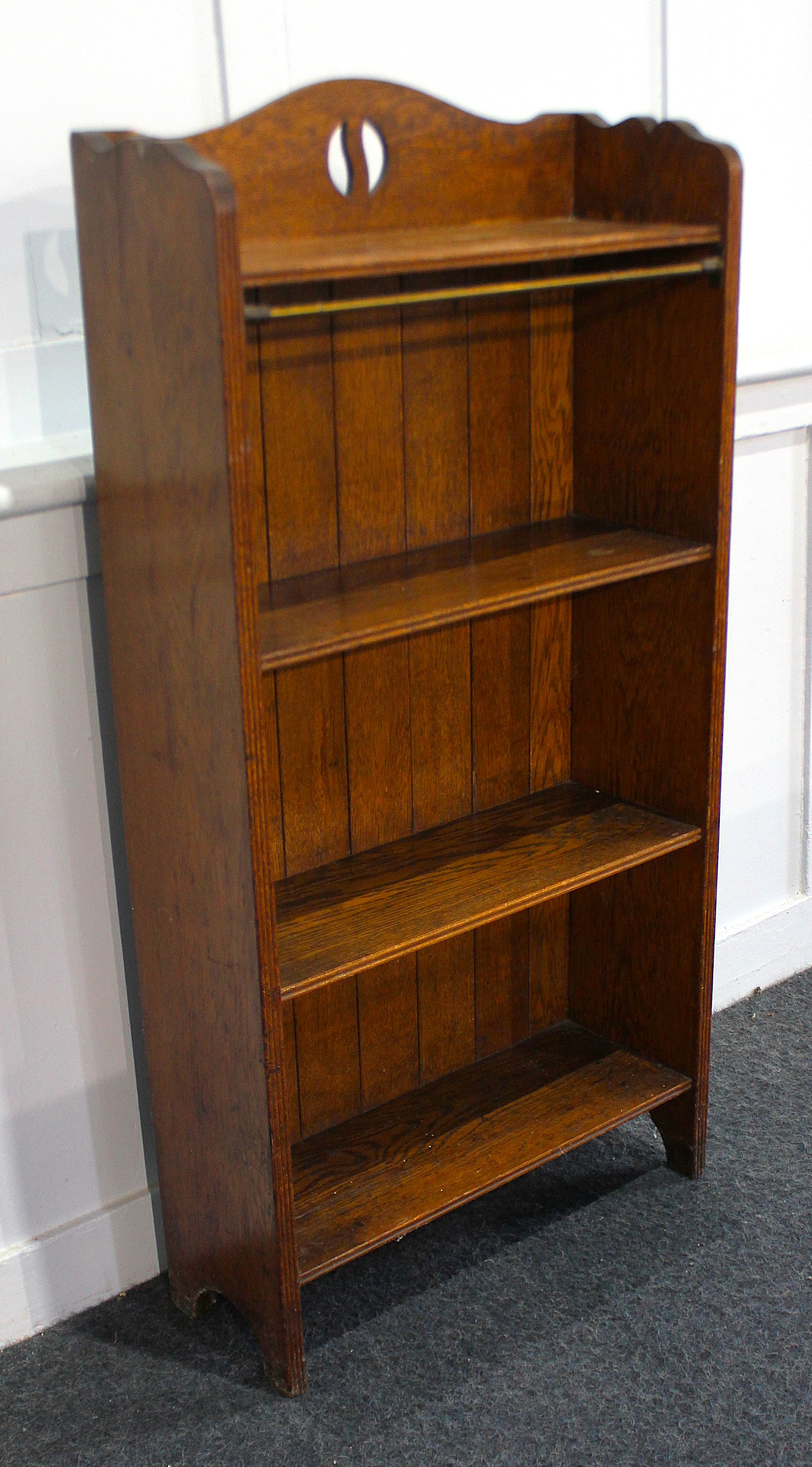 An Arts & Crafts oak bookcase, 54cm wide by 20cm deep by 104cm high.