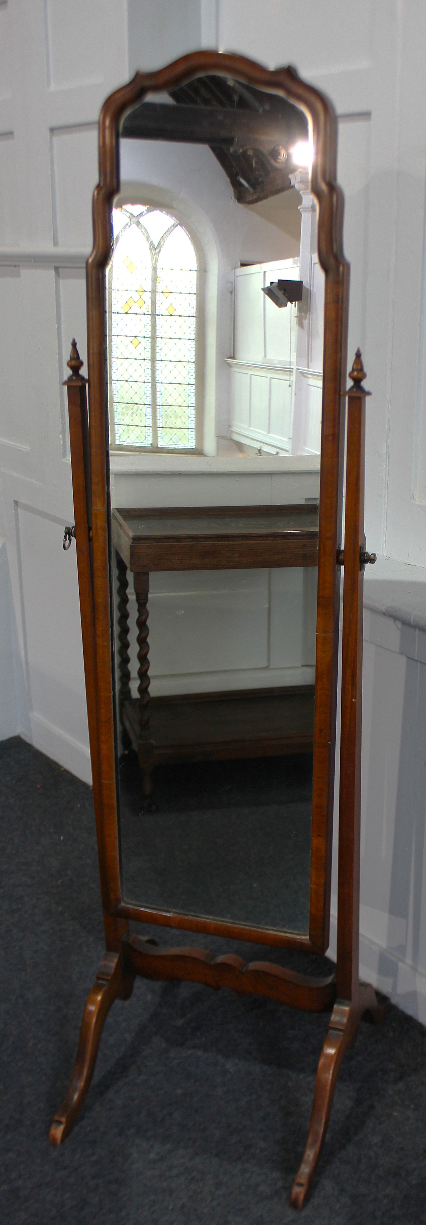 A vintage Georgian style walnut cheval mirror, early / mid 20th century, 158cm high.