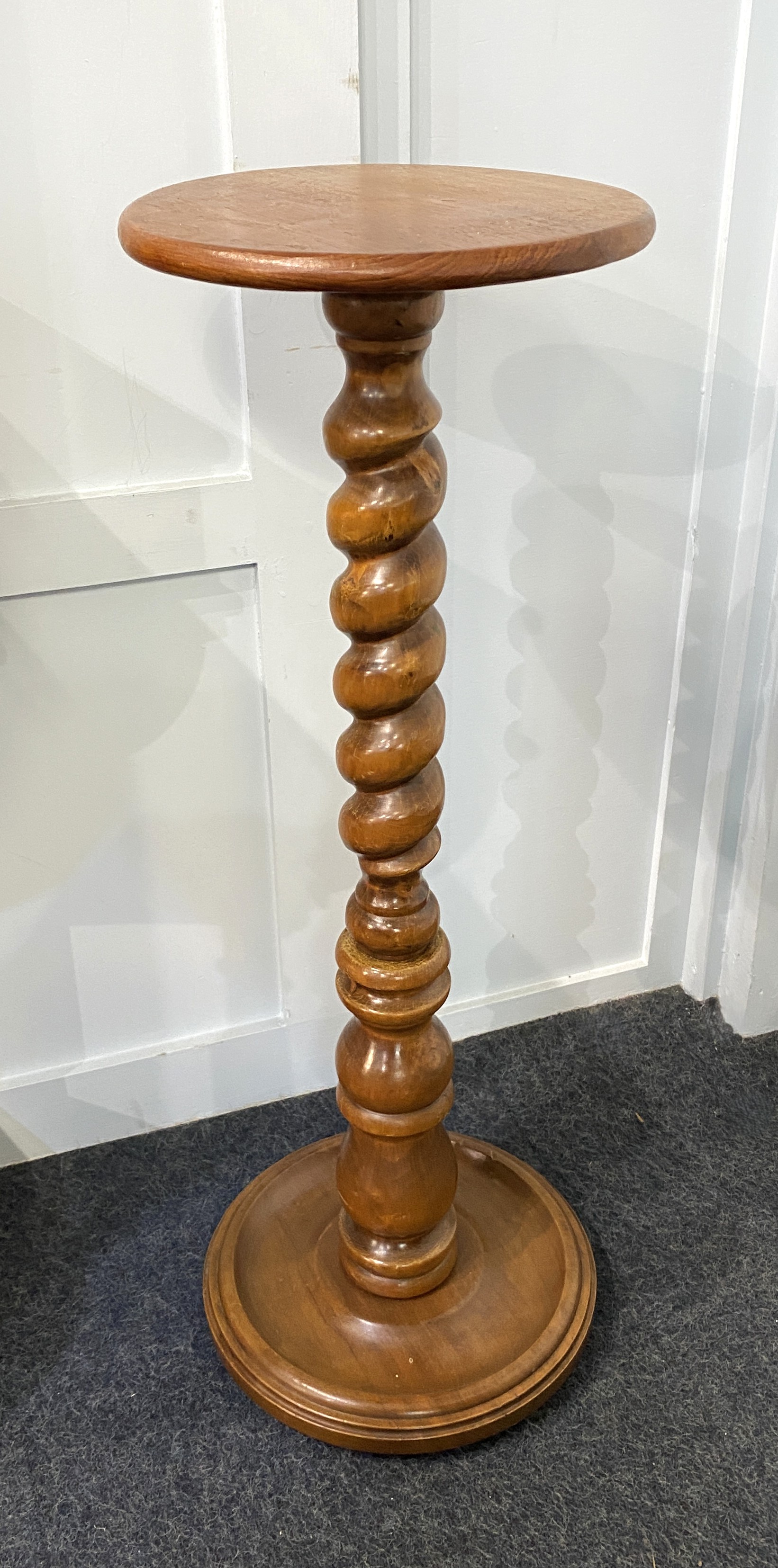 A Victorian style stained wood jardiniere stand with circular top on barley twist stem to circular base, height 87cm, diameter 29.5cm