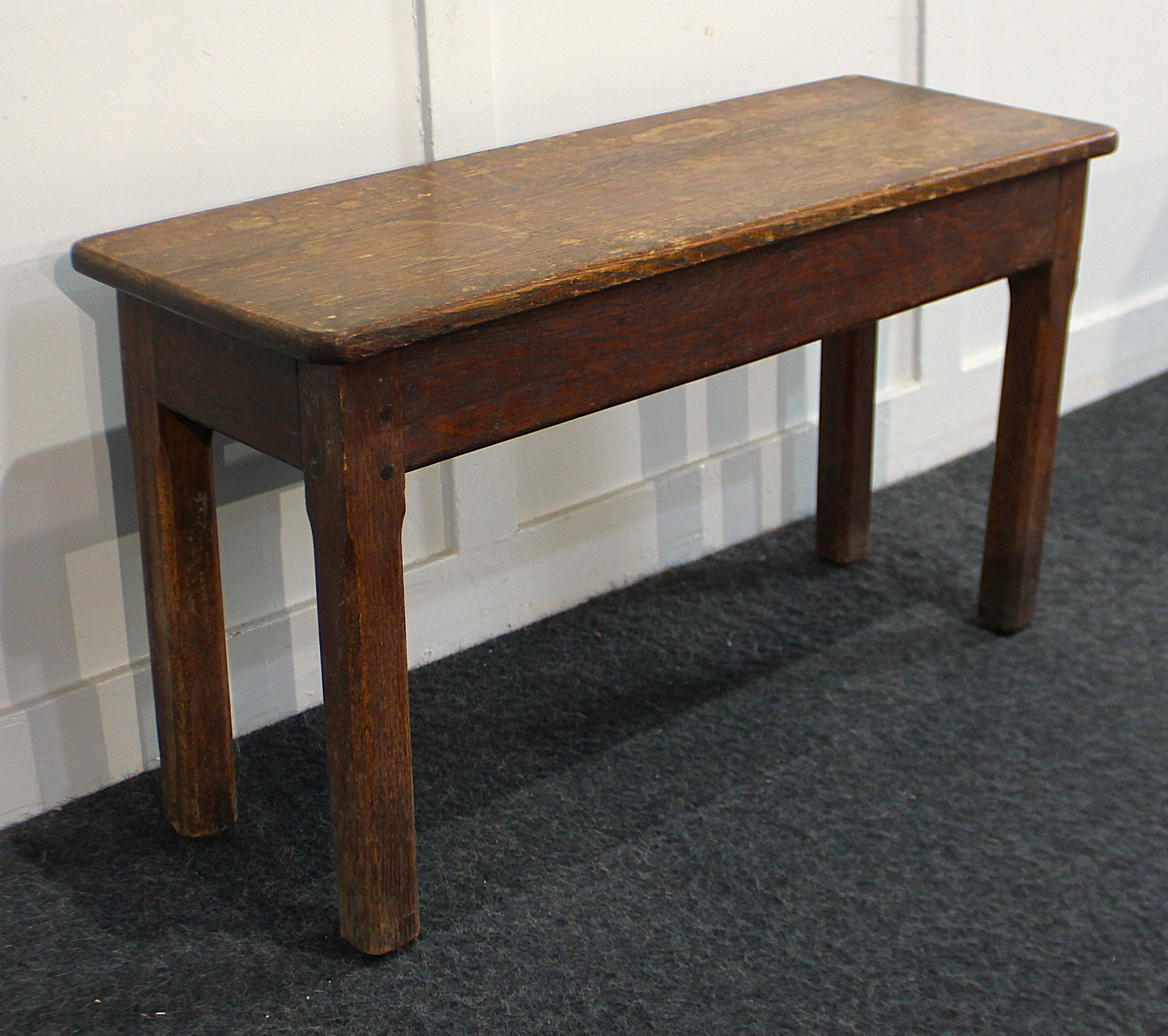 An oak bench / coffee table, 81cm by 30cm, by 46cm high.