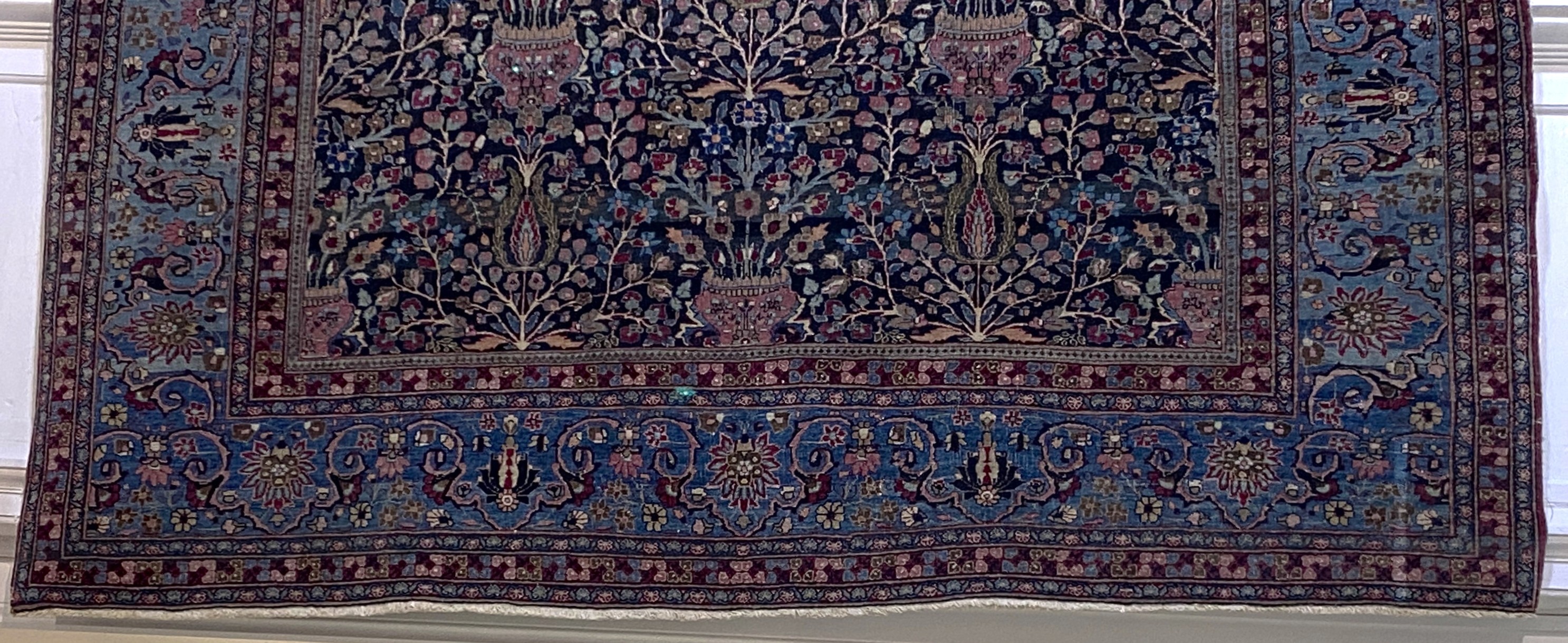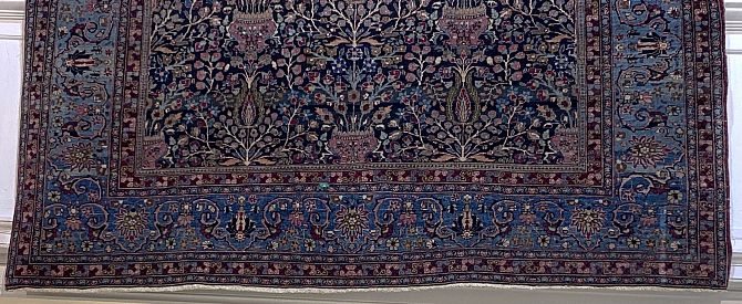 A large Persian Isfahan style rug, dark blue ground with all-over garden of paradise repeat motif, approx 275cm by 400cm