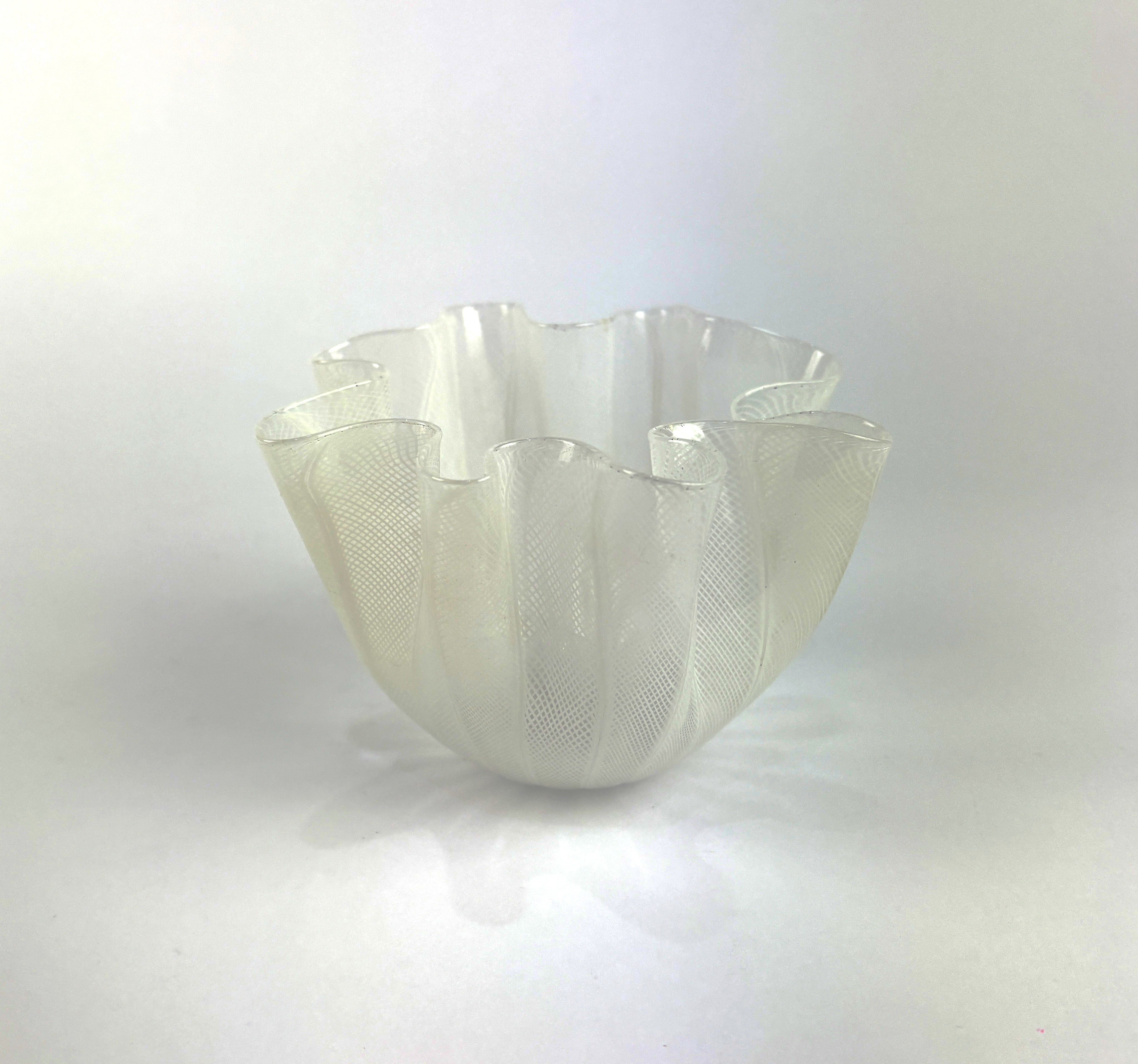 A latticinio glass handkerchief vase in the manner of Fulvio Bianconi for Venini, unsigned, 9cm high