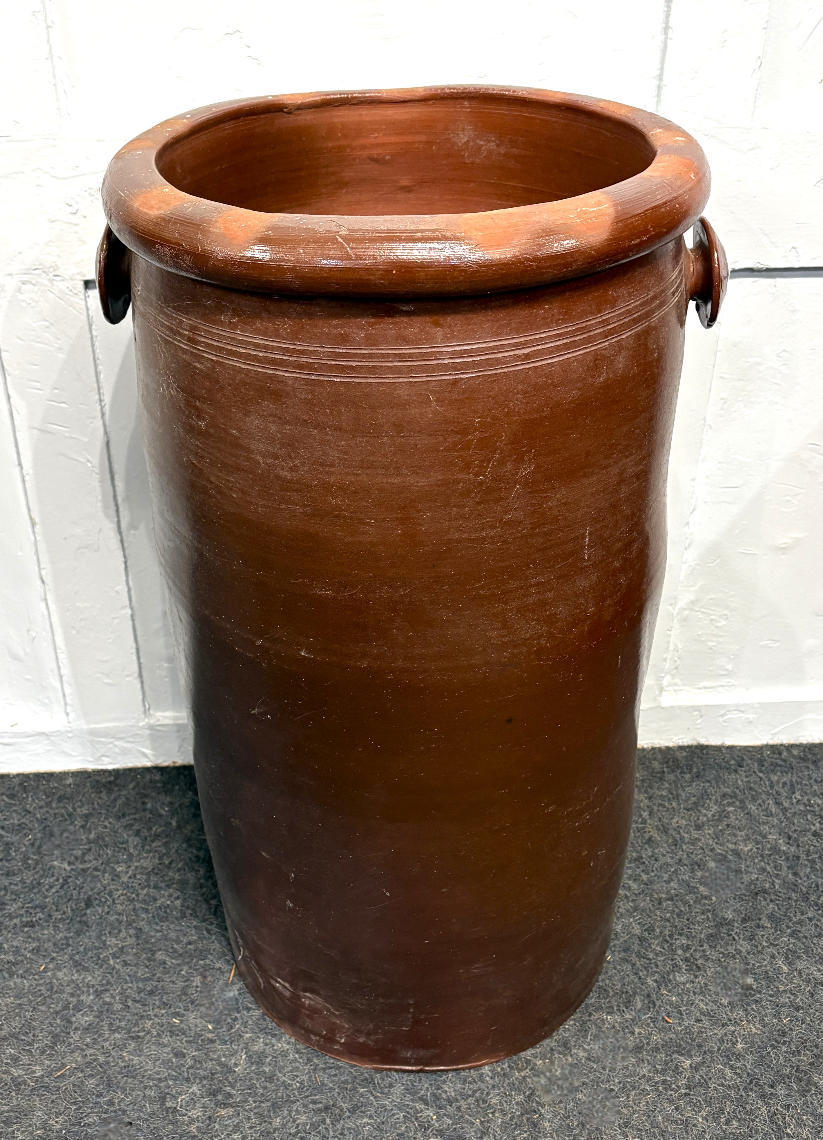A French brown salt glazed confit pot, 66cm high, 36cm diameter