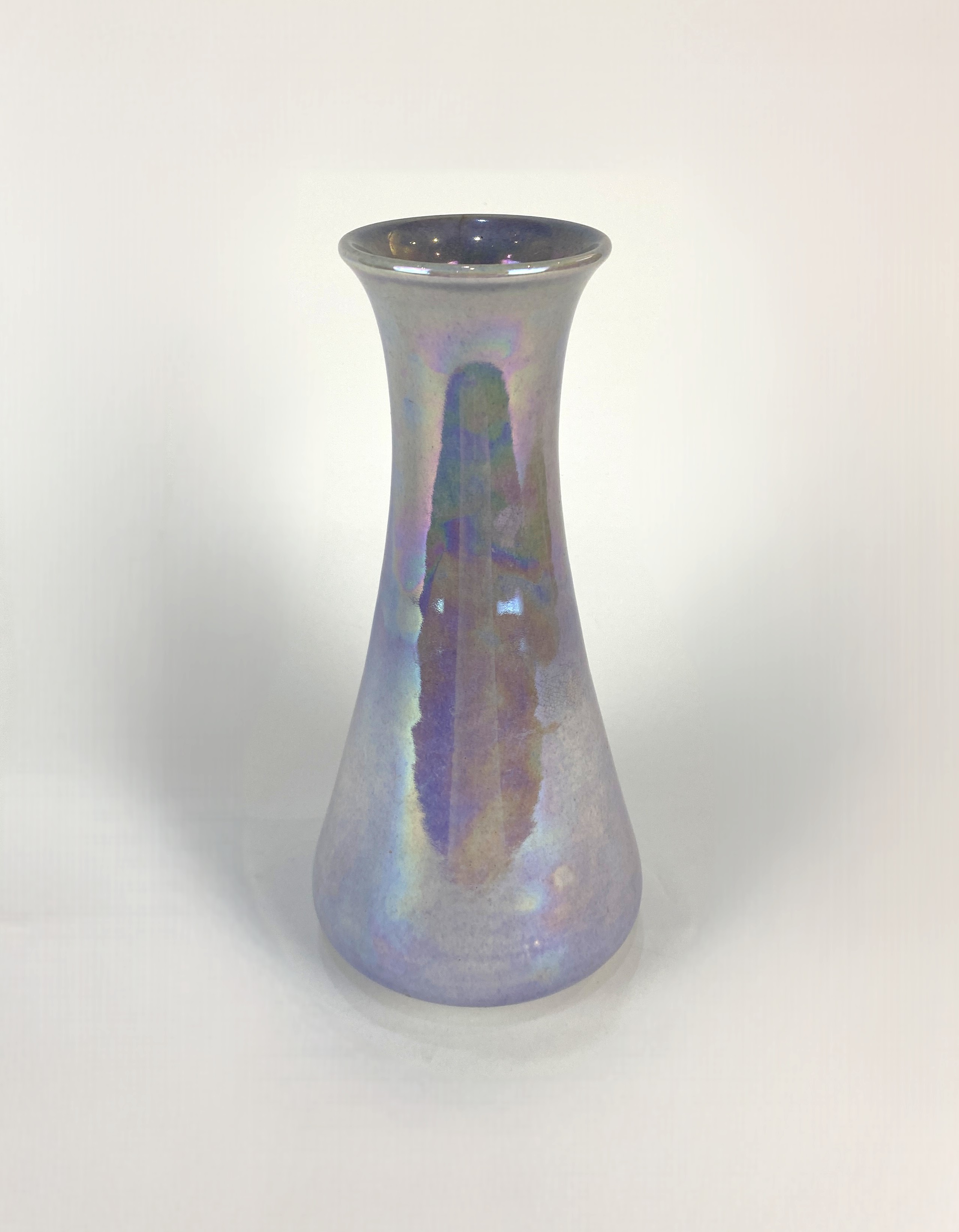 A Ruskin pottery iridescent lustre vase with pale violet glaze, of baluster form with flared rim, 24cm high