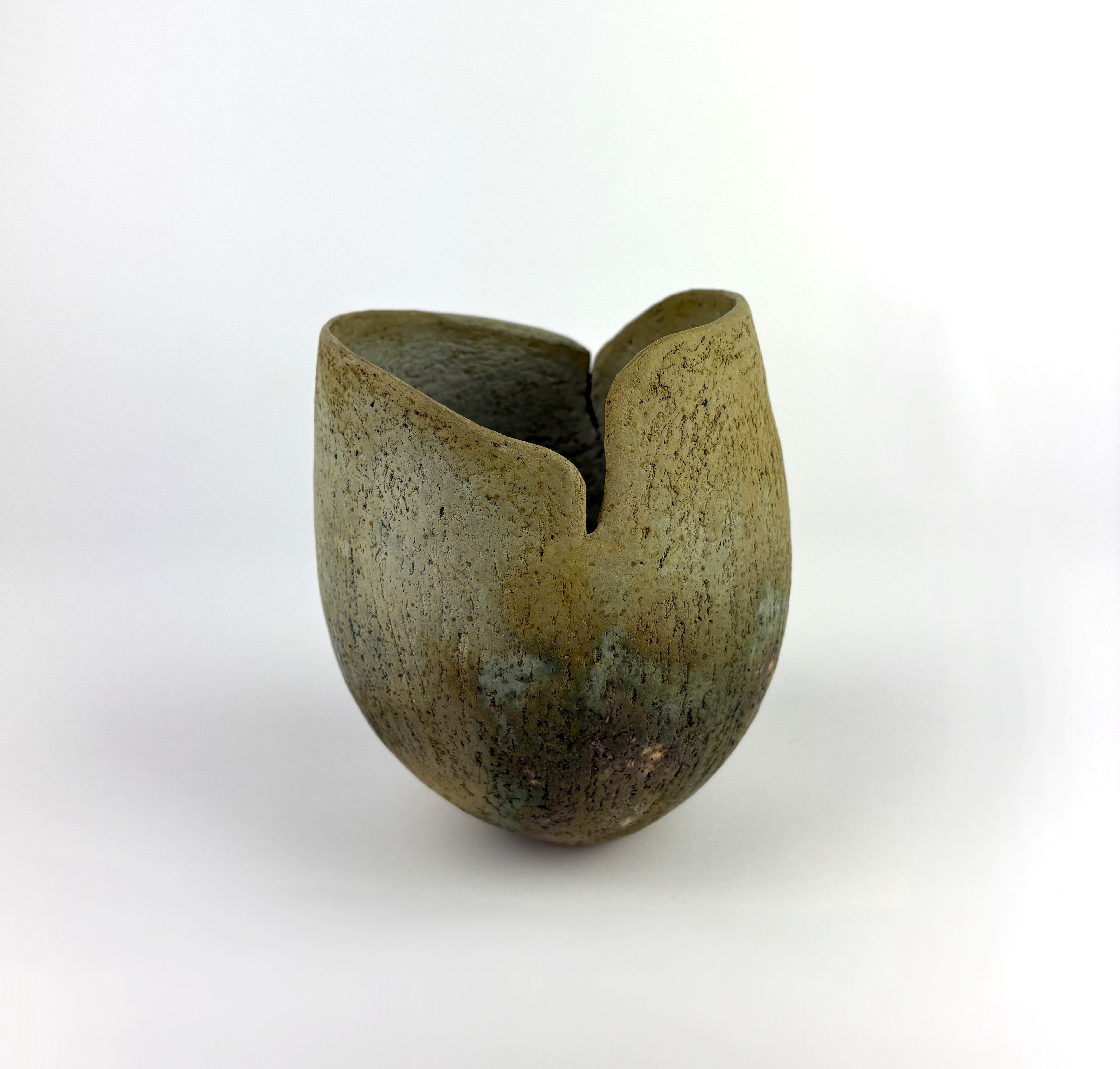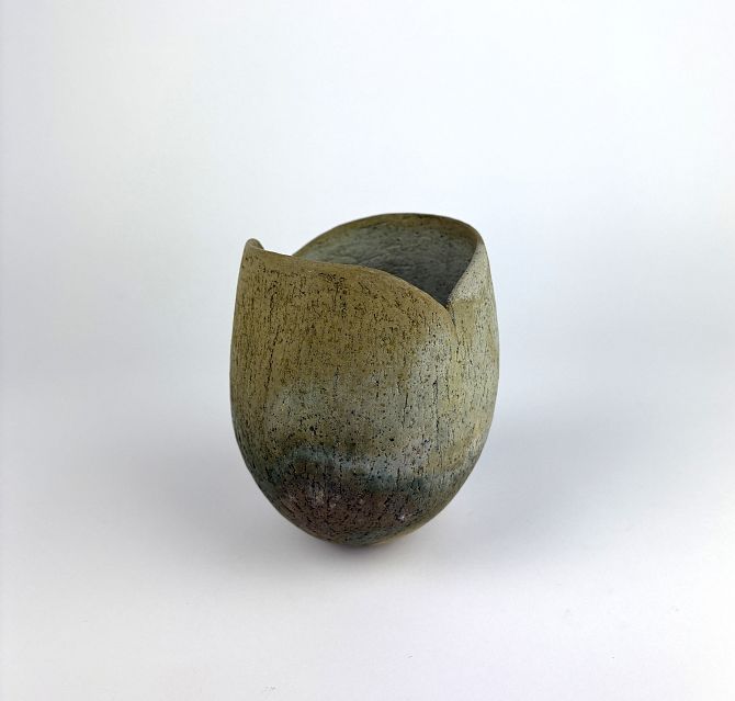 Elspeth Owen (b 1938), a stoneware vessel / vase, with textured surface in green and blue, unsigned, 11.5cm high (ARR)