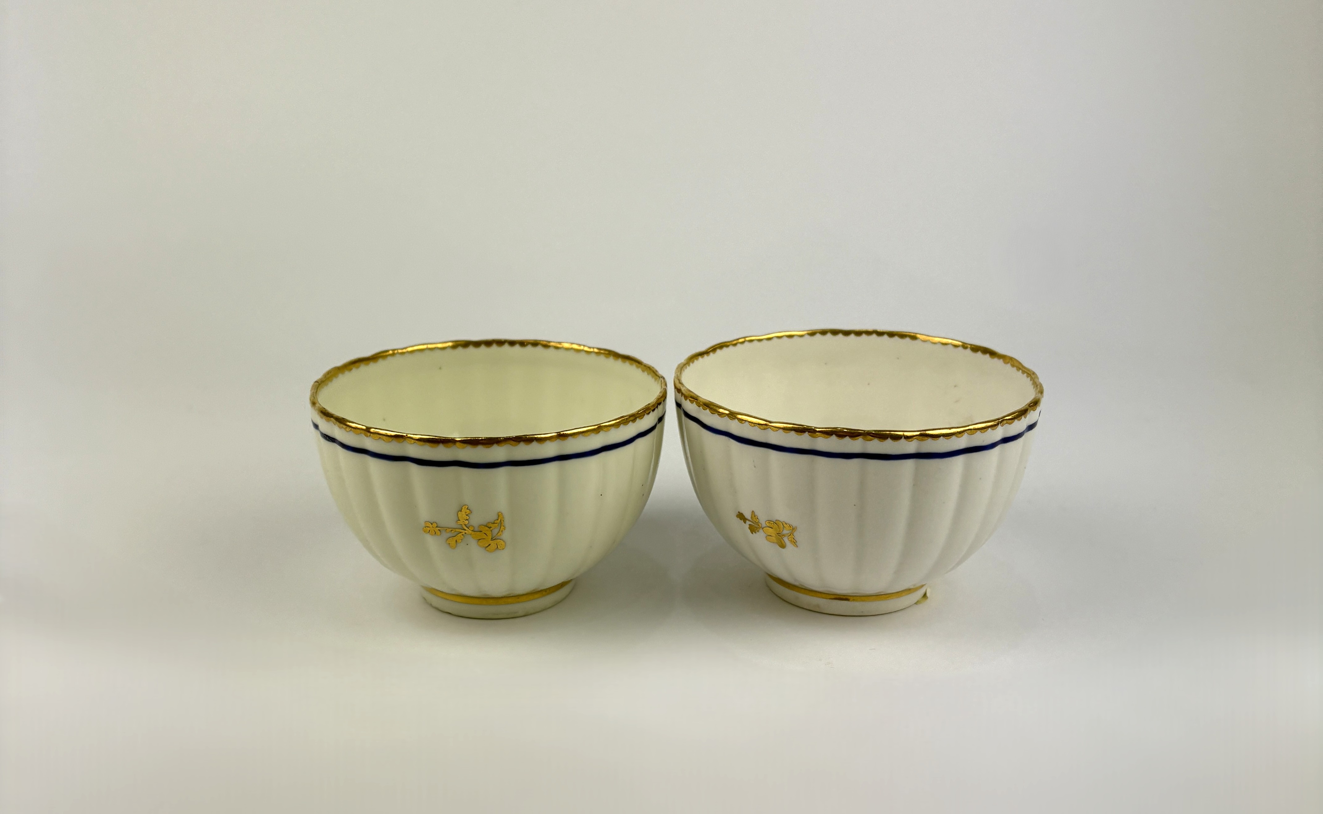 Two 18th century Derby porcelain tea bowls with gilt sprig decoration