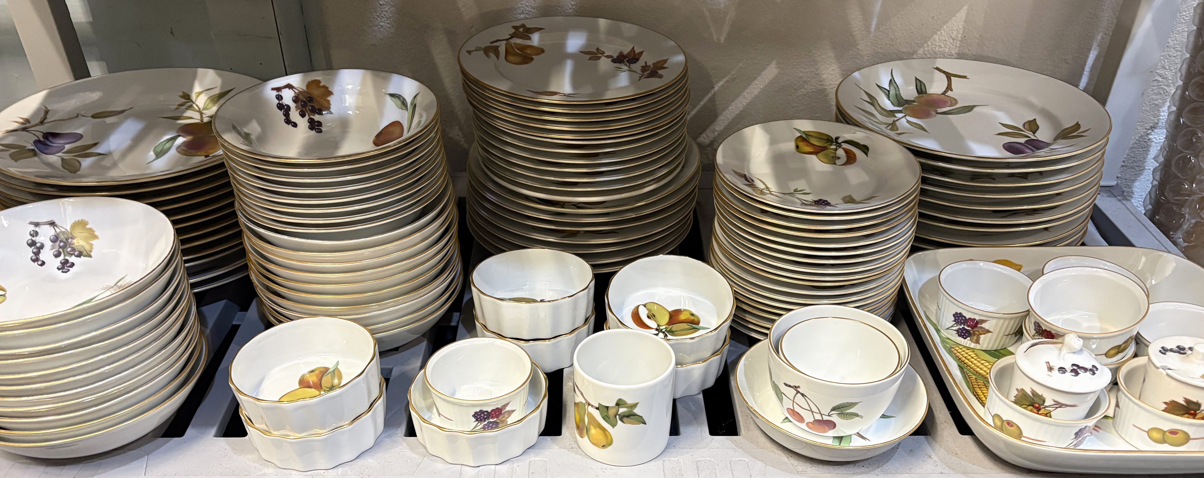 A large collection of Royal Worcester 'Evesham' pattern porcelain dinner and table ware to include dishes, tureens etc