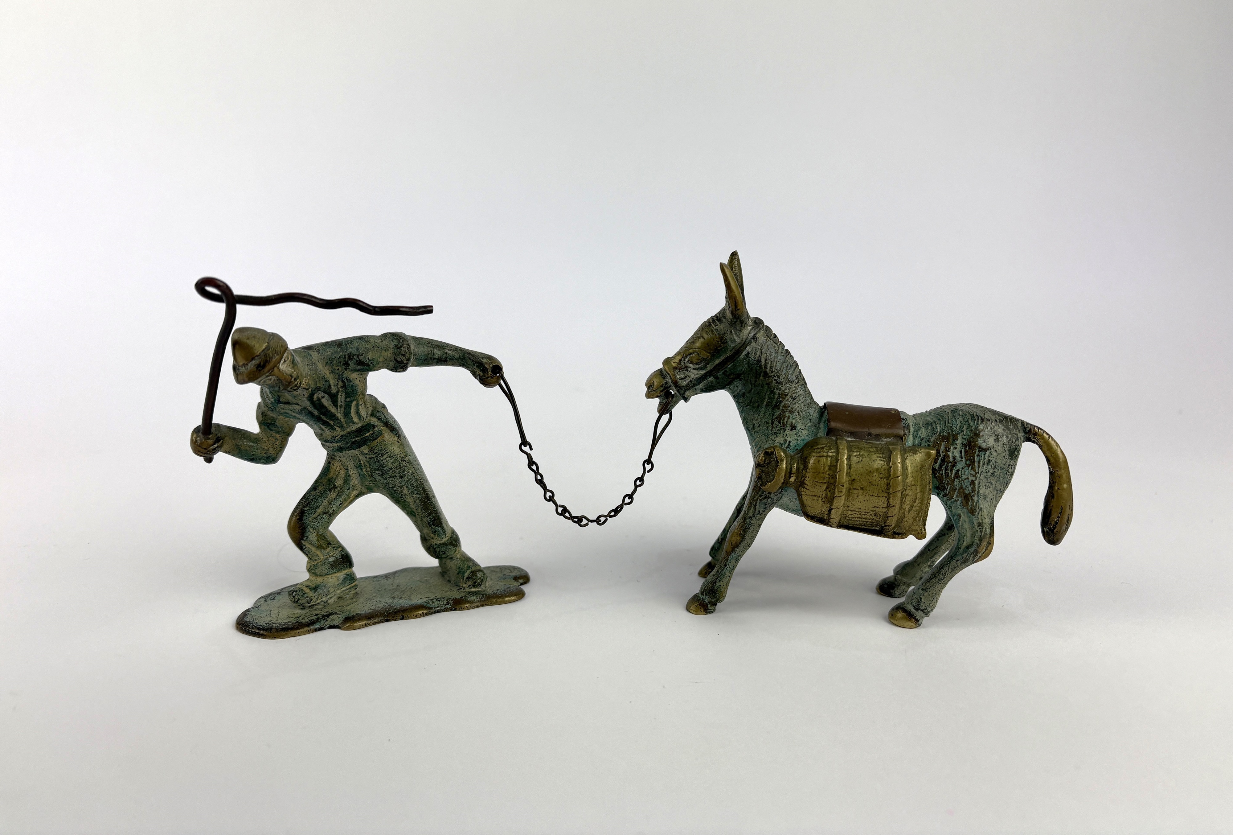 A patinated bronze model of a man leading a mule 10cm high
