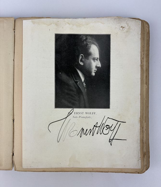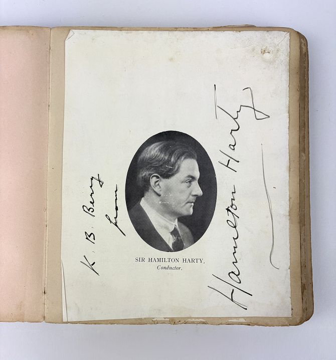 An early 20th century autograph book containing signatures from musicians and conductors including Sir Hamilton Harty, Arthur Schnabel, Ernst Wolff and Paul Robeson, also some sketches and poems etc (part-full)