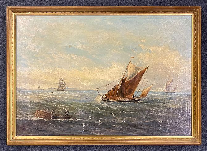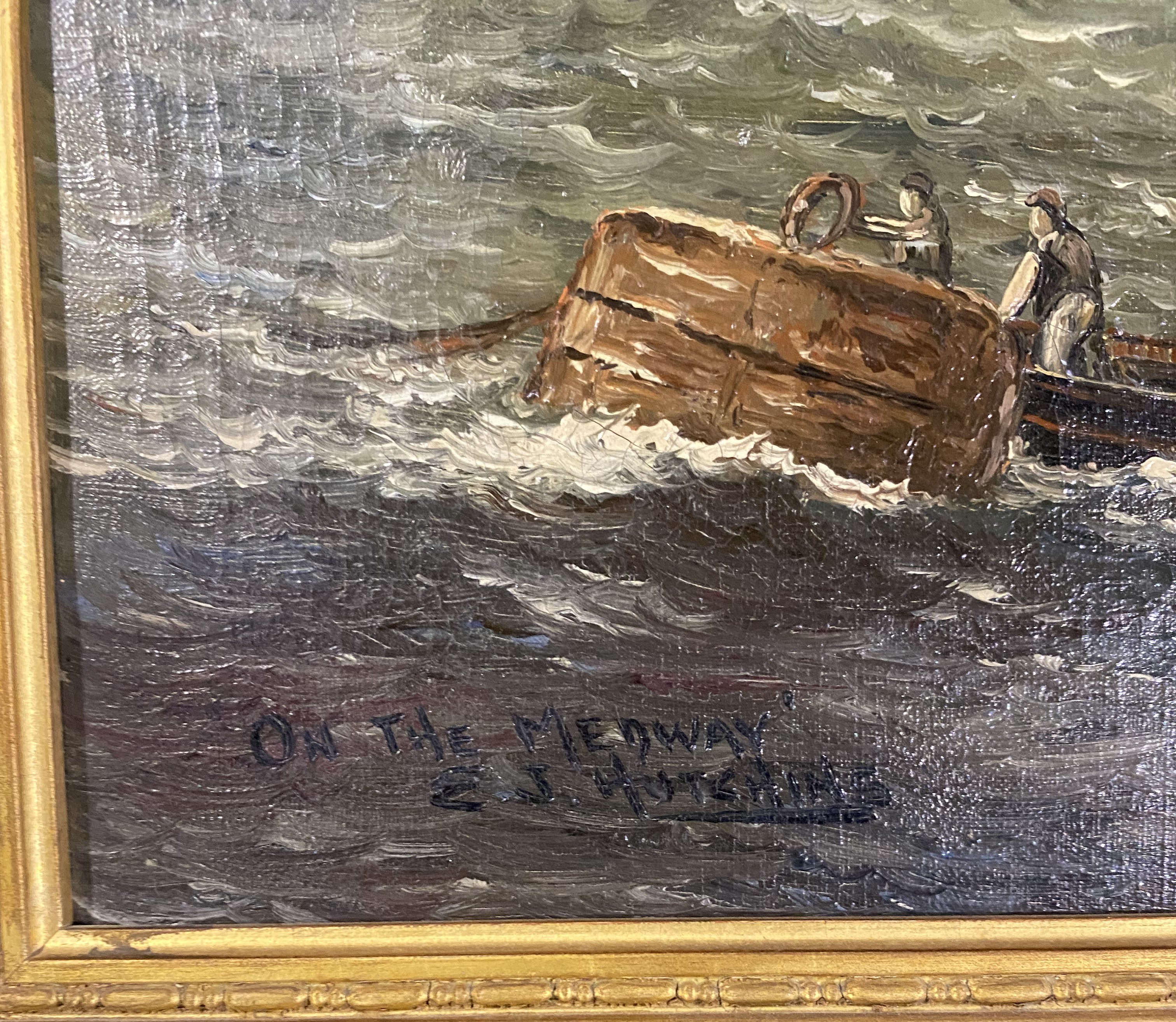 Ernest John Hutchins (British - Canadian, c. 1880 - 1935), 'On The Medway', marine scene, oil on canvas, signed and titled lower left, framed, 45cm x 64cm