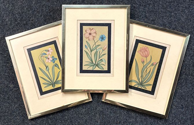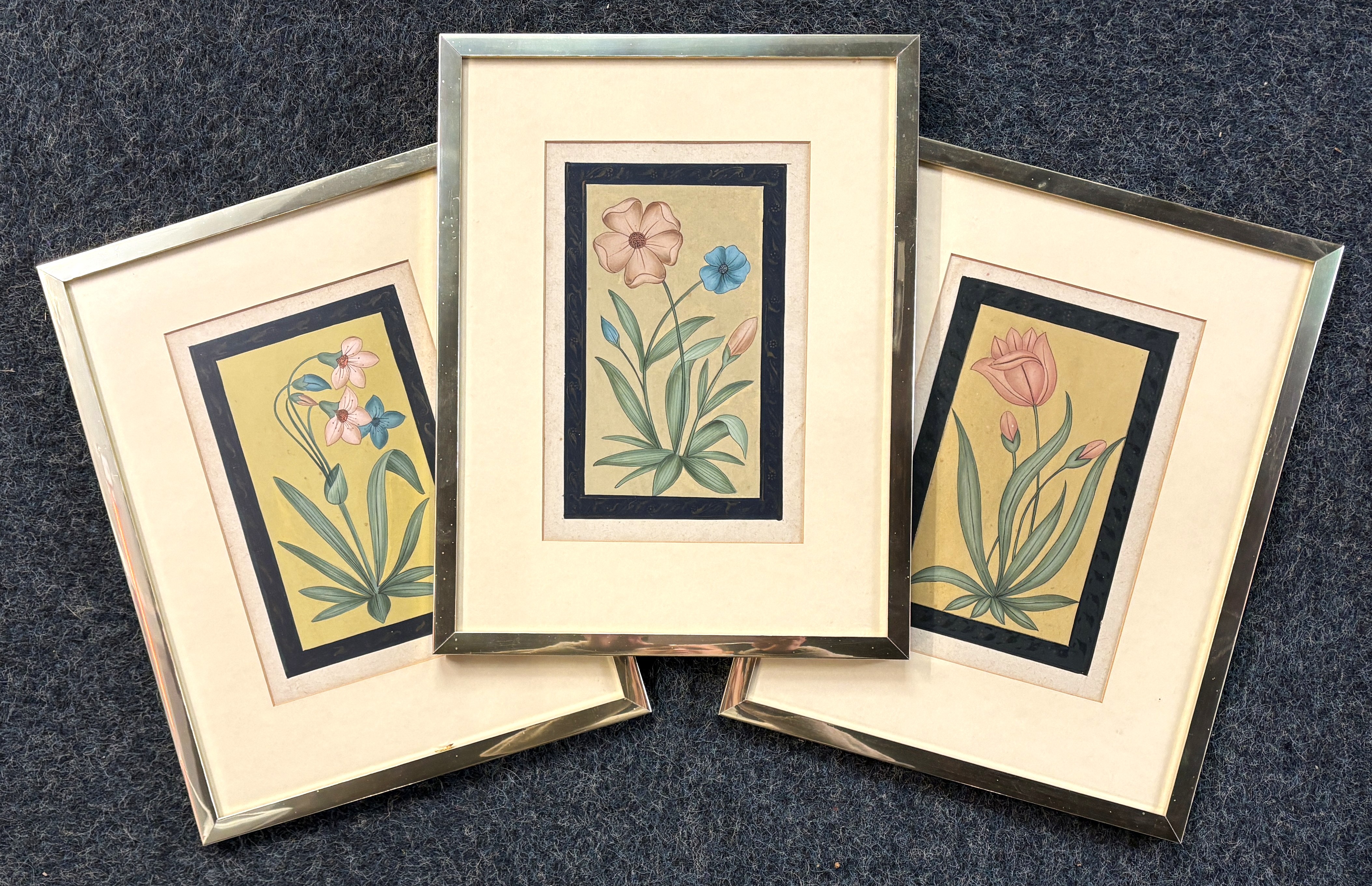 Three framed Mughal style flower pictures on paper 22.5cm by 15cm