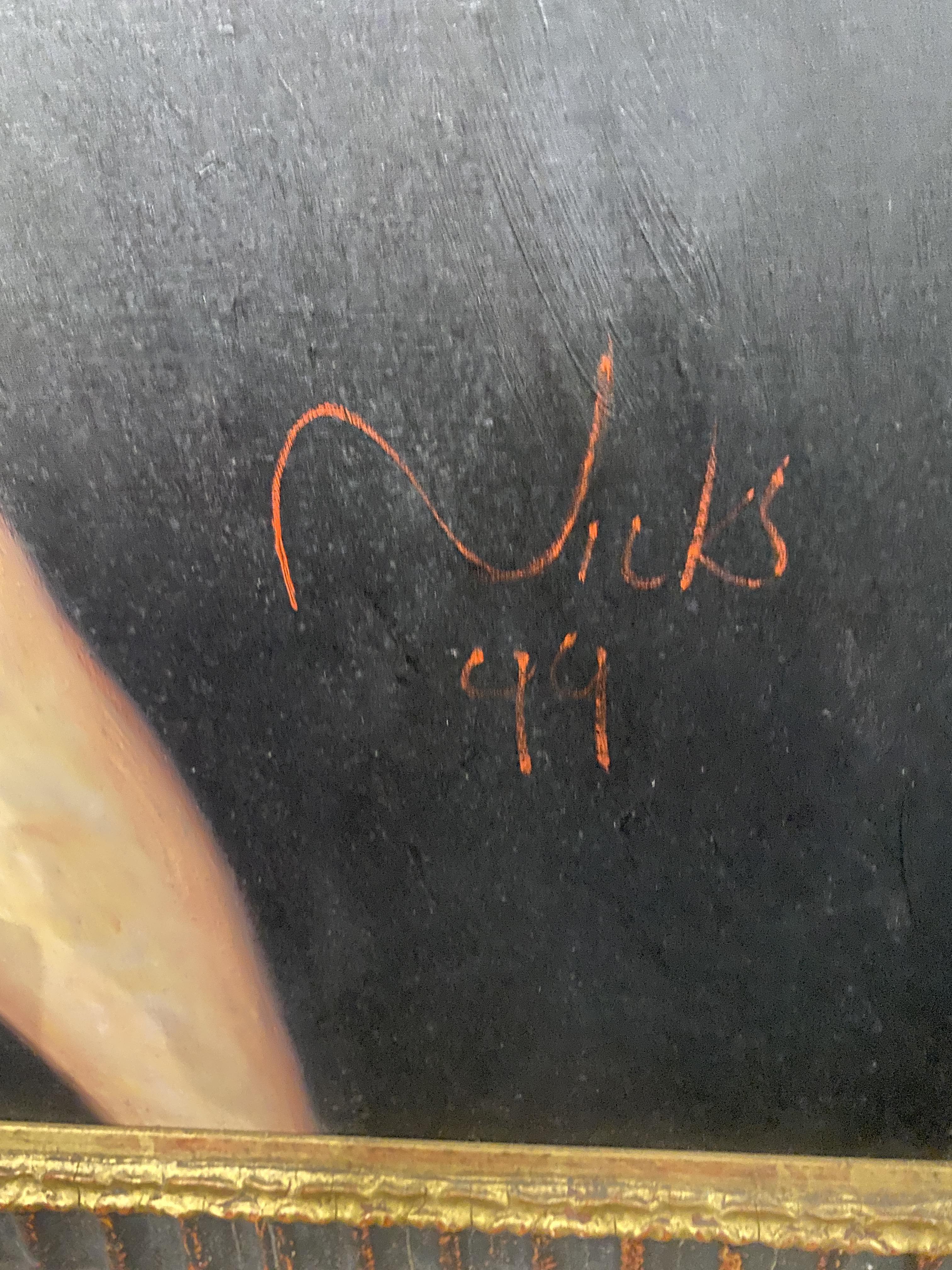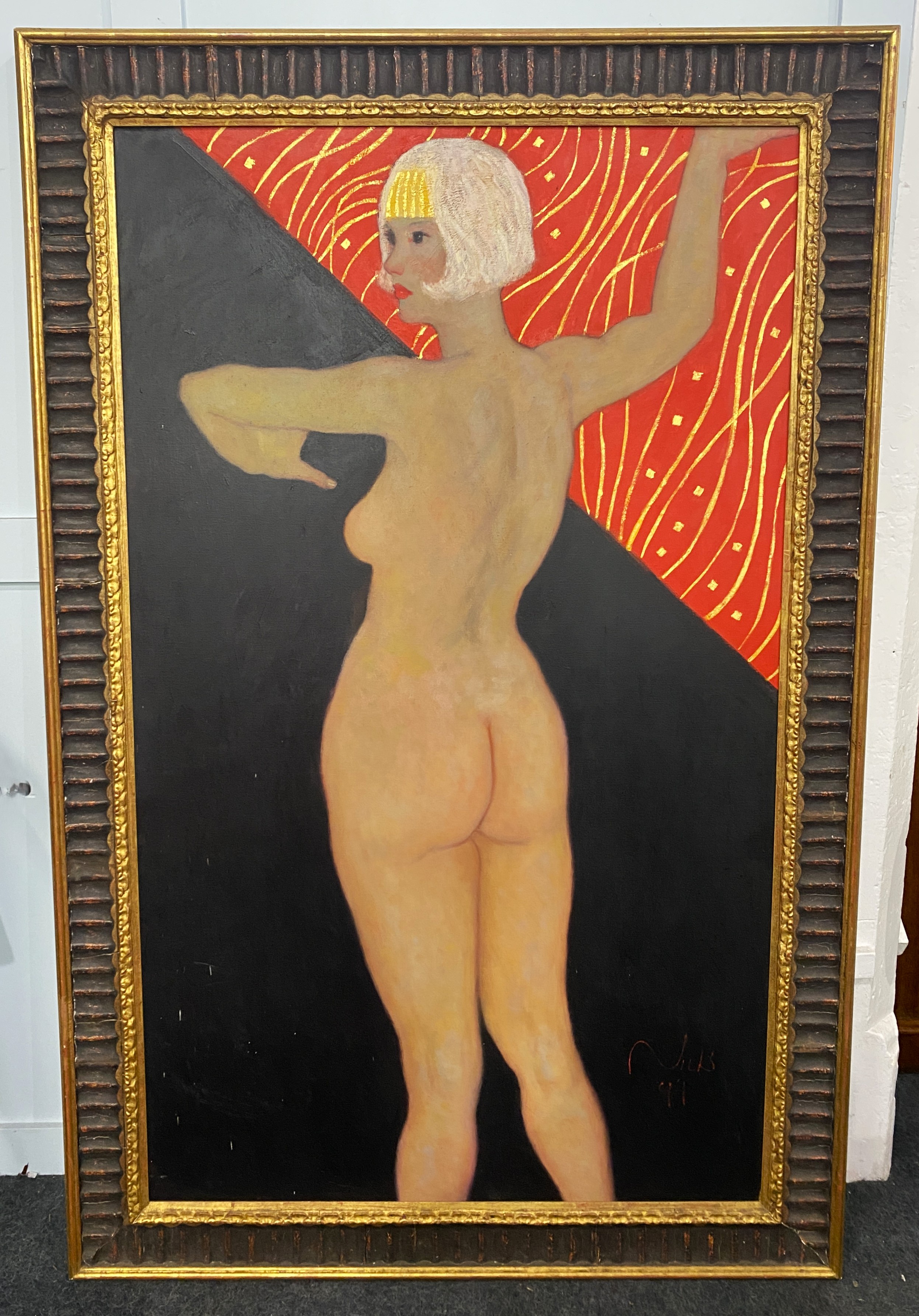 Kanwaldeep Singh Kang (aka Nicks) (British, 1964 - 2007), 'Katrin 1', oil on canvas, signed and dated (19)99, 152cm by 90cm, framed.