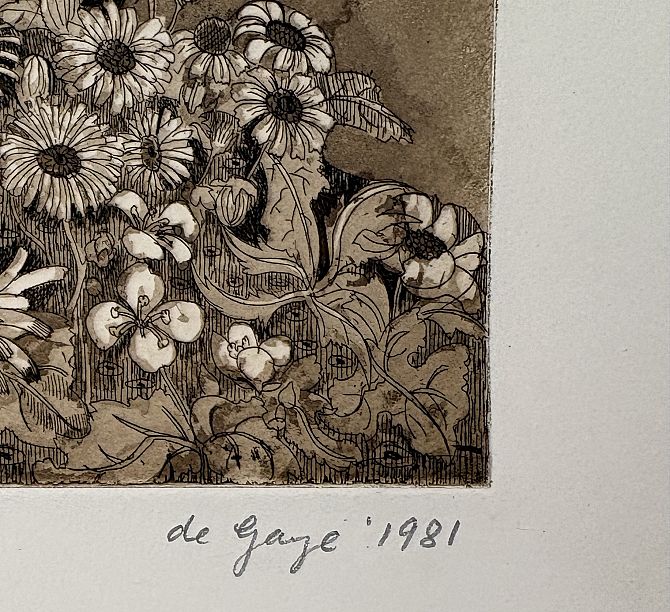 Elizabeth Morris (contemporary), landscape with rushes, 'O'Connor's House', etch...