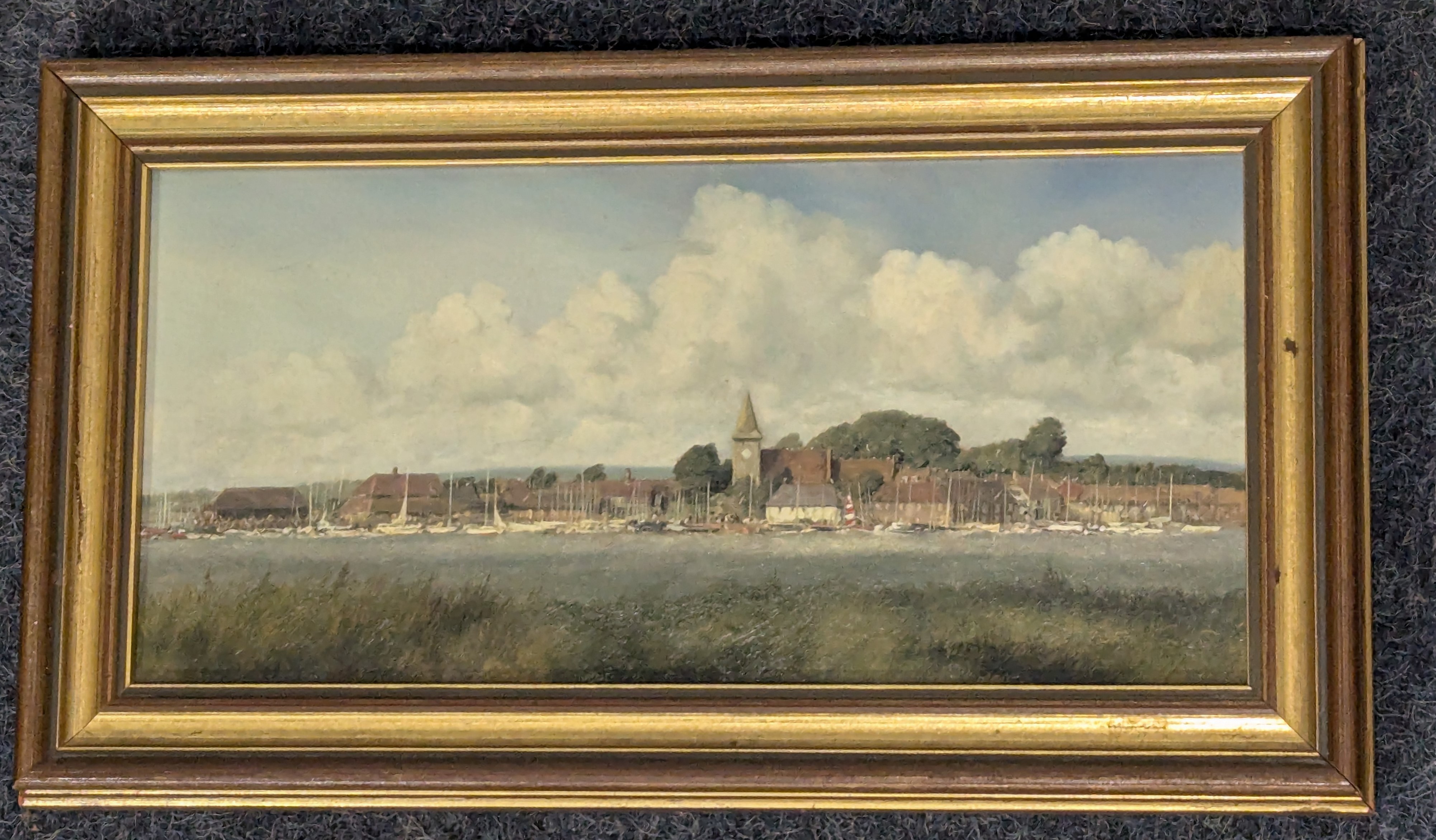 Oliver Ommanney, 'Bosham', oil on board, unsigned, verso inscribed, 14cm by 29cm