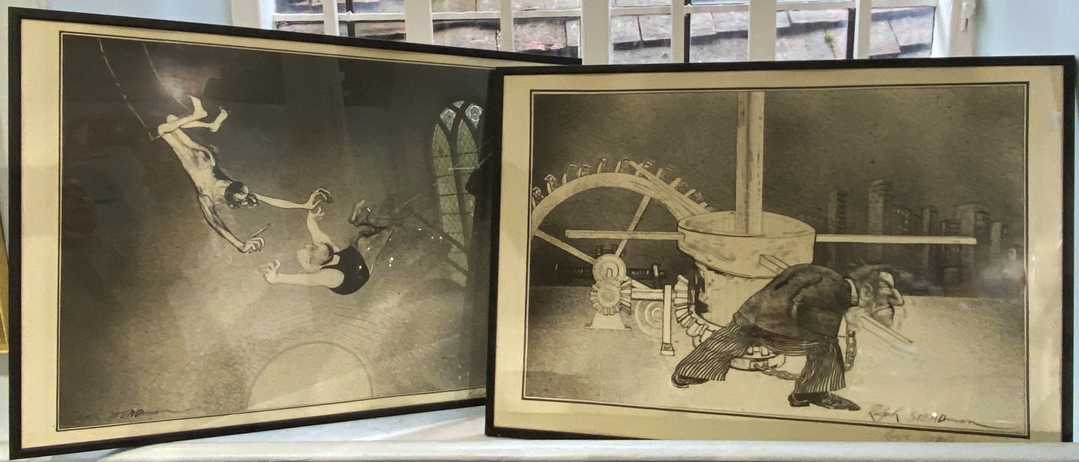 Ralph Steadman (b 1936), two framed lithographs comprising 'Gonzo Artist' and two acrobats, both blindstamped and signed in pencil, 57cm by 81cm