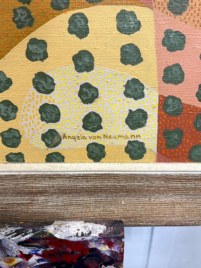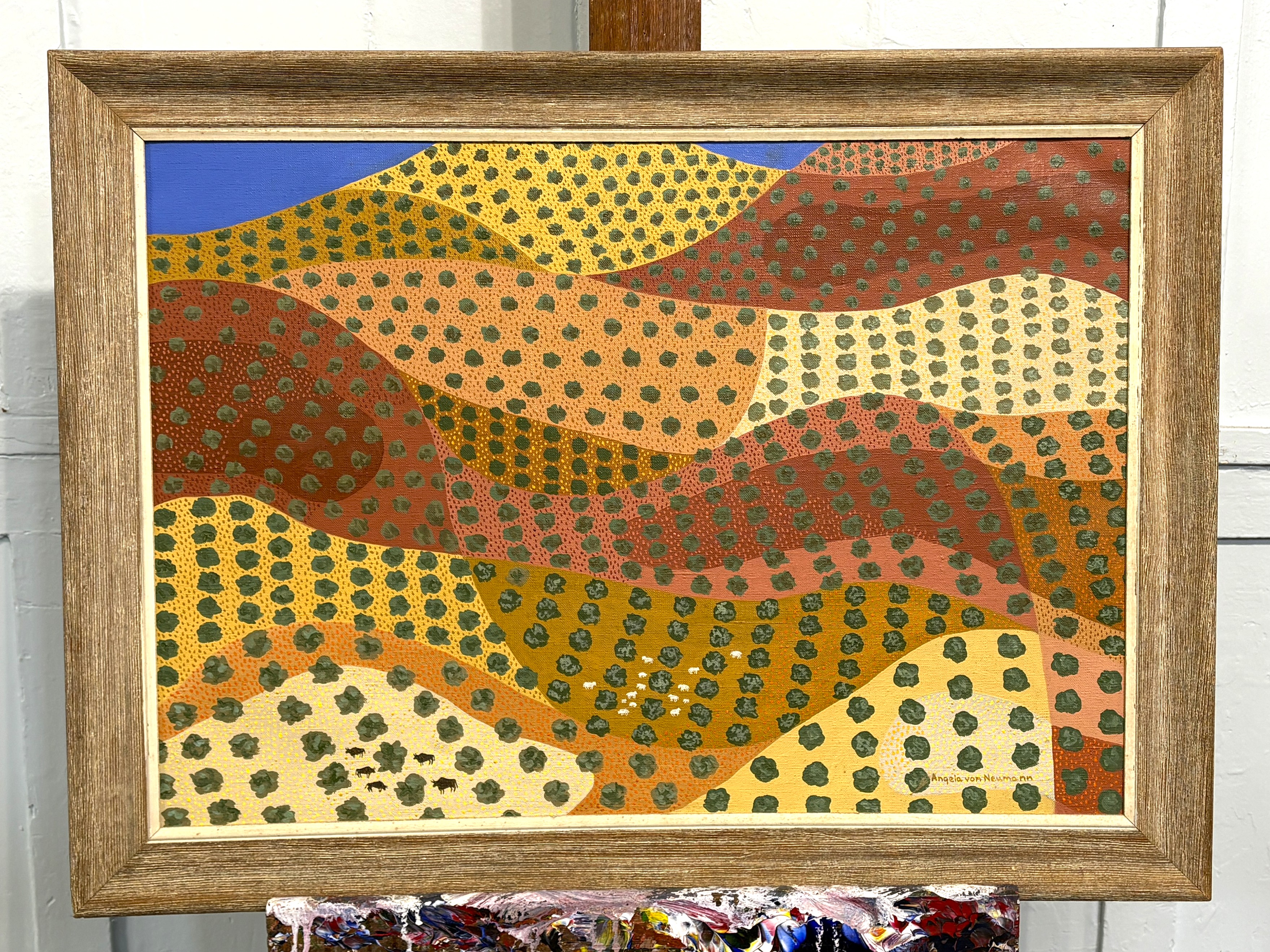 Angela von Neumann (German / American, 1928 - 2010), 'Landscape with cattle', oil on canvas, signed, 50cm by 70cm, framed.