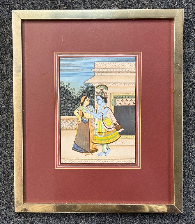 Indian school, Radha and Krishna, gouache on paper, 15.5cm by 11cm