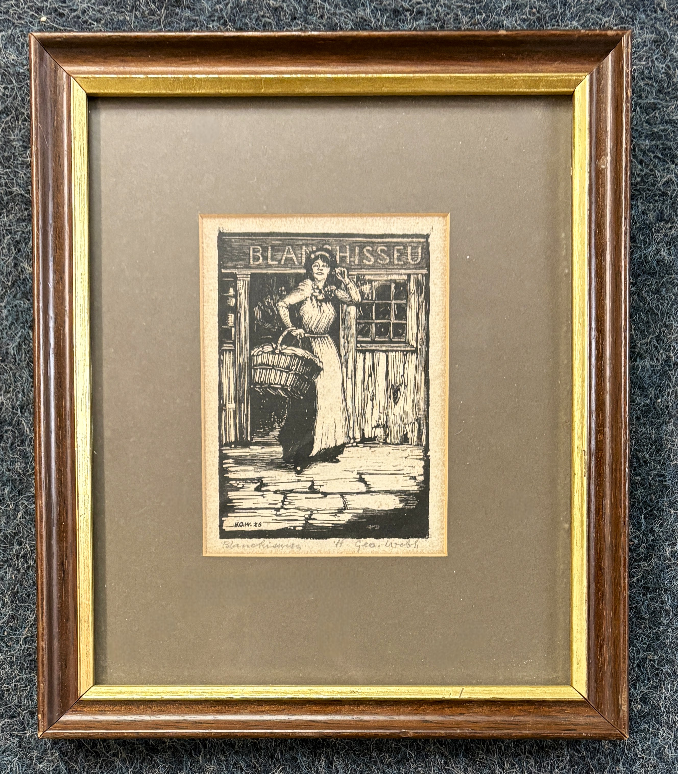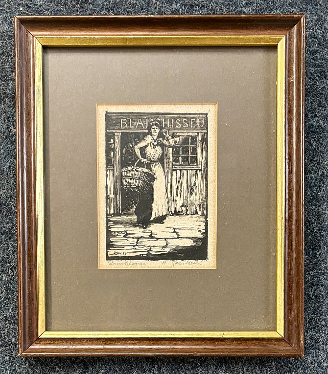 H George Webb (early 20th century), 'Blanchisseuse', block print, inscribed and signed in pencil, 13.5cm by 10cm