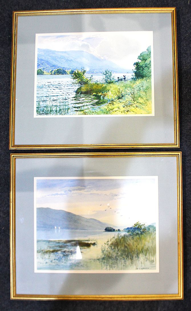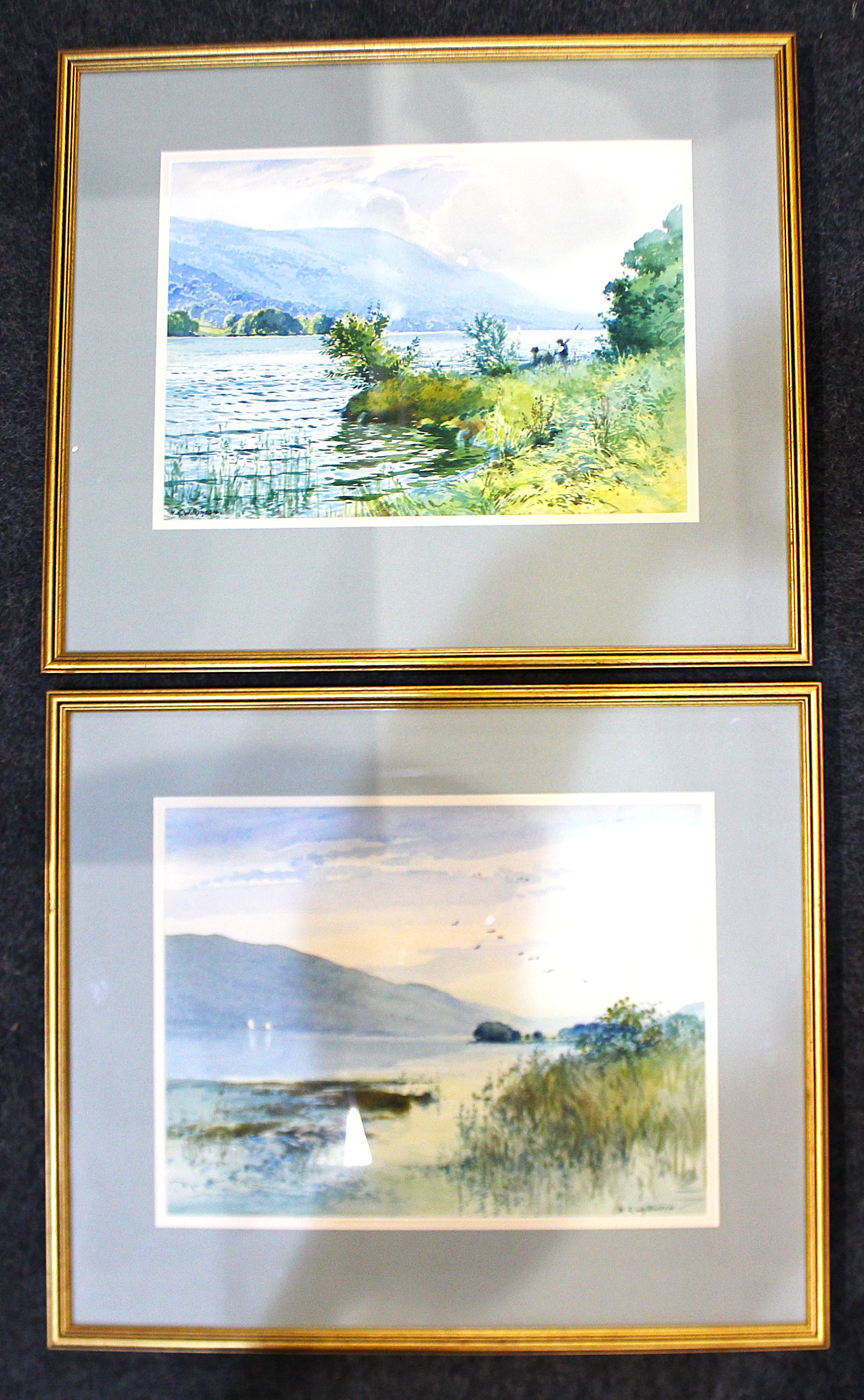 Henry Robinson Wilkinson (1884-1975) two lake scenes, one inscribed verso 'Coniston Water', watercolours, both signed, 25.5cm by 36cm