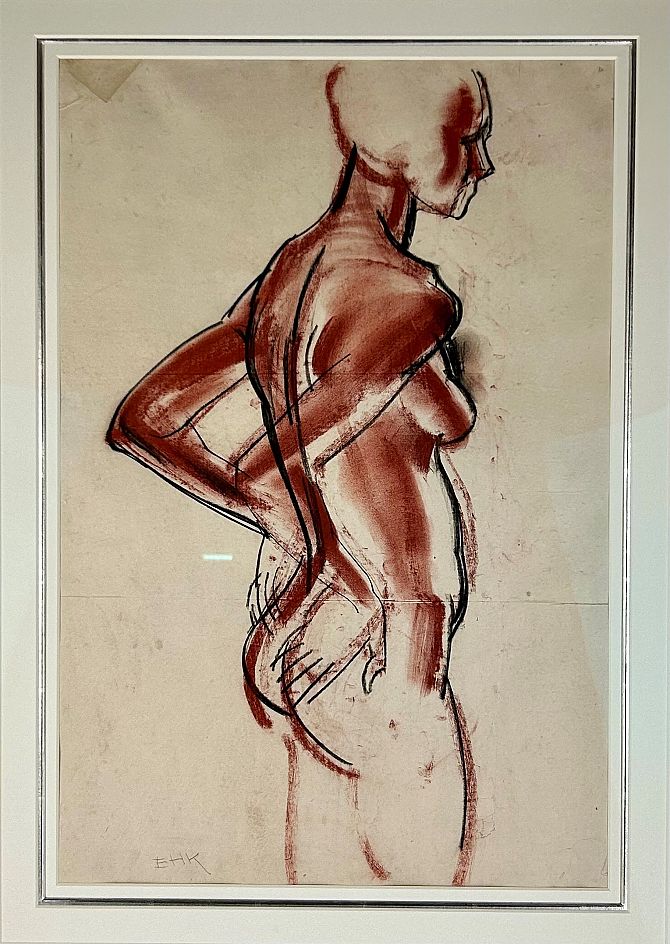 Eric Henri Kennington R.A. (British, 1888-1960), 'Female Nude', coloured chalks on paper, signed with initials, 58cm by 39cm, framed. (ARR)