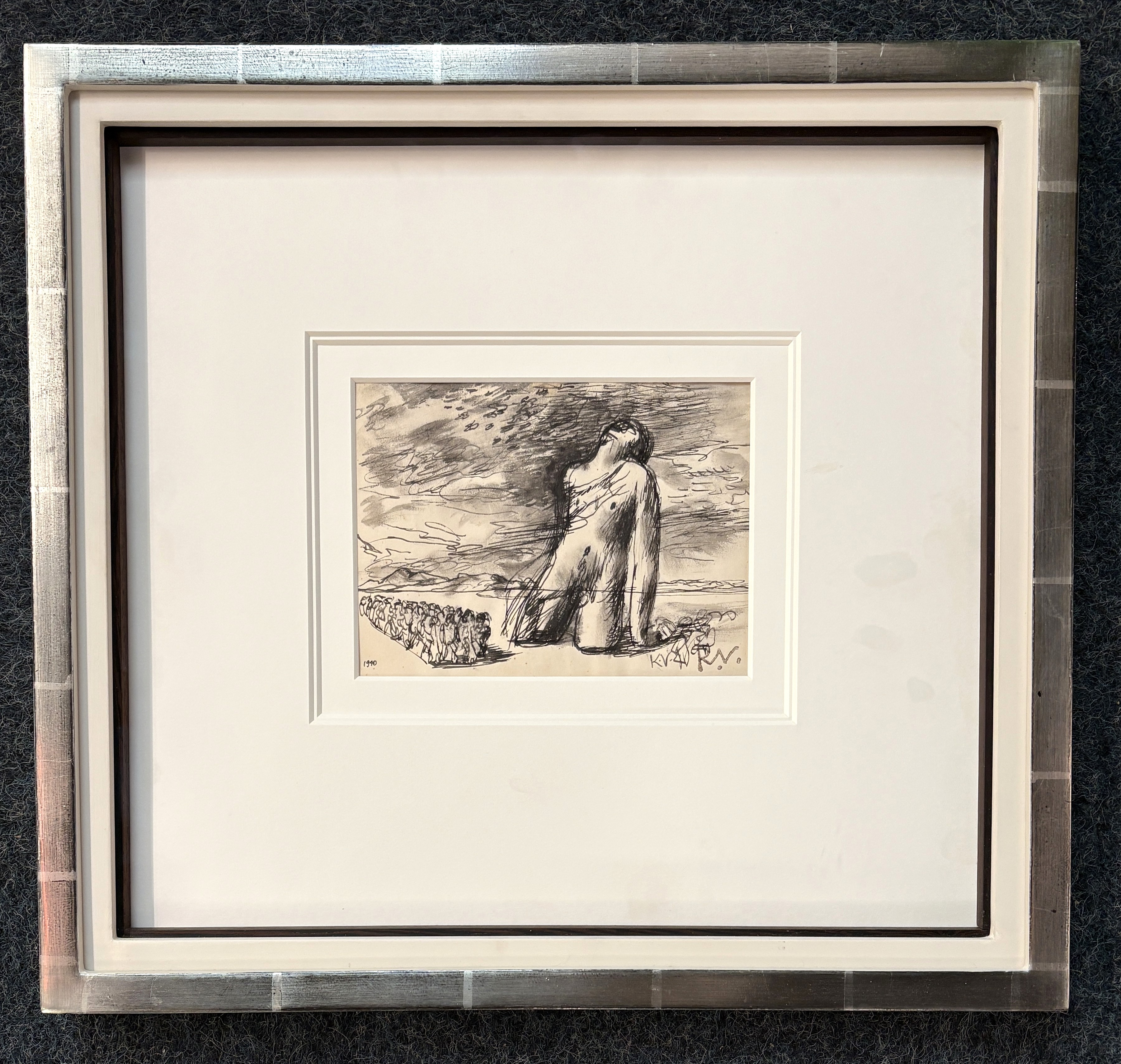 Keith Vaughan (British, 1912-1977), 'Idol 1', pen, ink and wash on paper, signed with initials and dated 1940, labels verso, 12cm by 16cm, framed. (ARR)