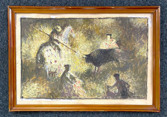 John Ulbricht (Cuban, 1926 - 2006), 'The Bullfight', expressionist gouache on card, signed, 24cm by 37cm, framed.