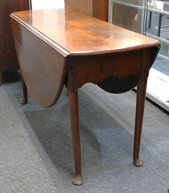 An 18th century Georgian mahogany drop leaf gate leg table, raised on padfoot supports, 128cm by 42cm opening to 128cm circular.