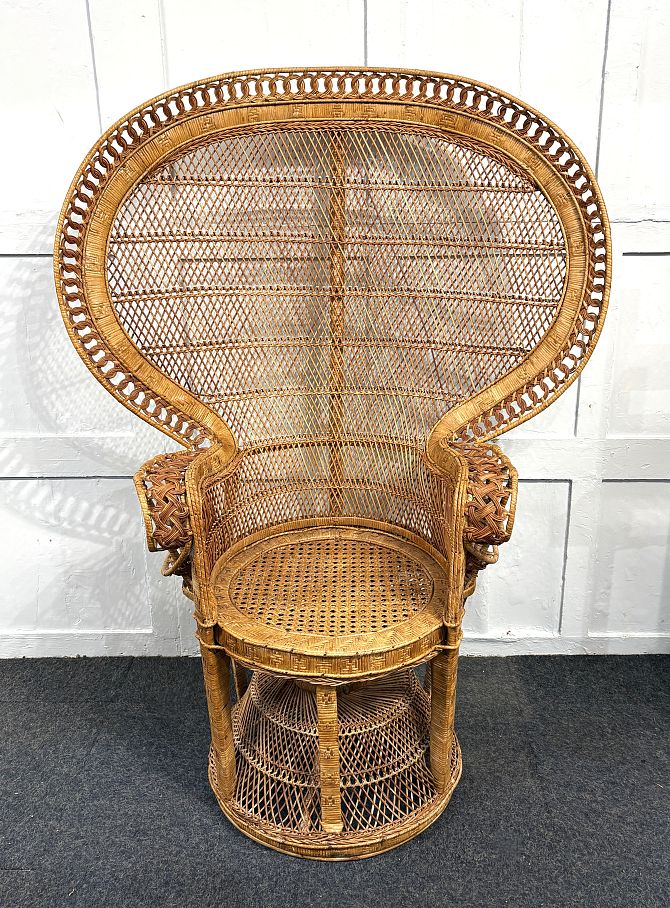 A vintage wickerwork 'Peacock' chair 146cm high