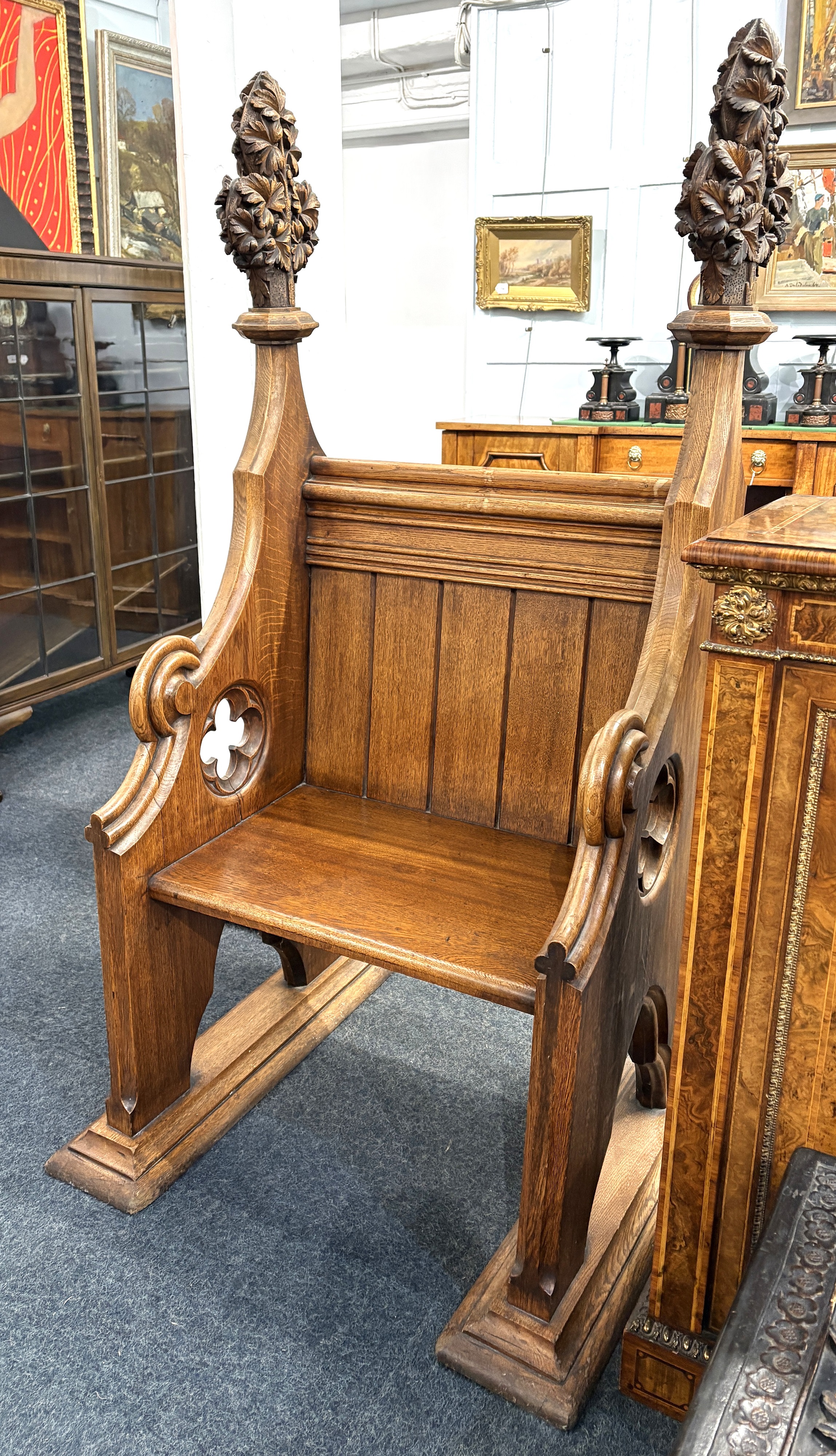 A Gothic Revival carved oak throne chair 154cm high, 83cm wide, 74cm deep