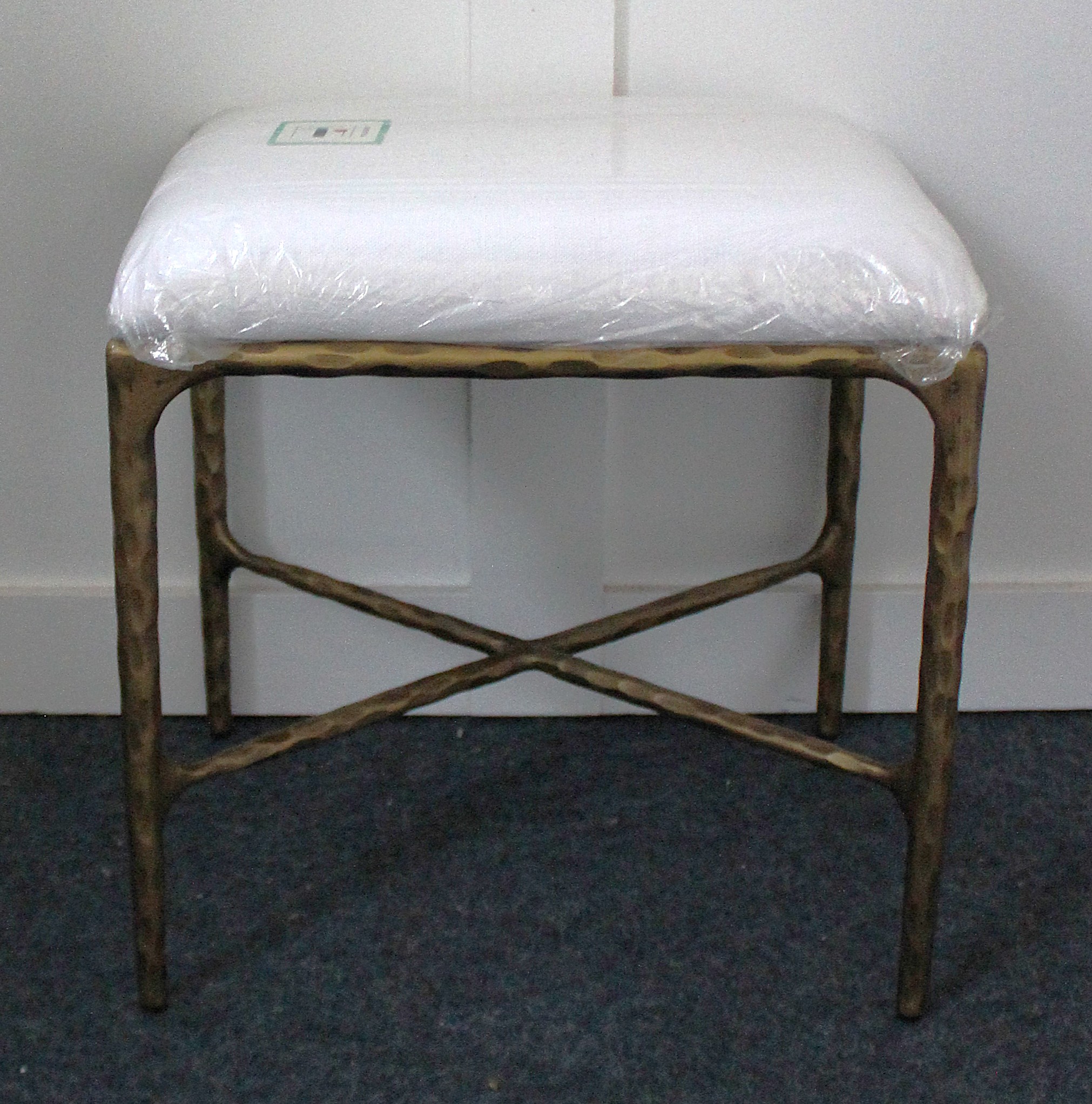 A bronzed metal stool with upholstered seat, (in new condition with plastic cover still on the seat), 45cm high by 45cm wide.