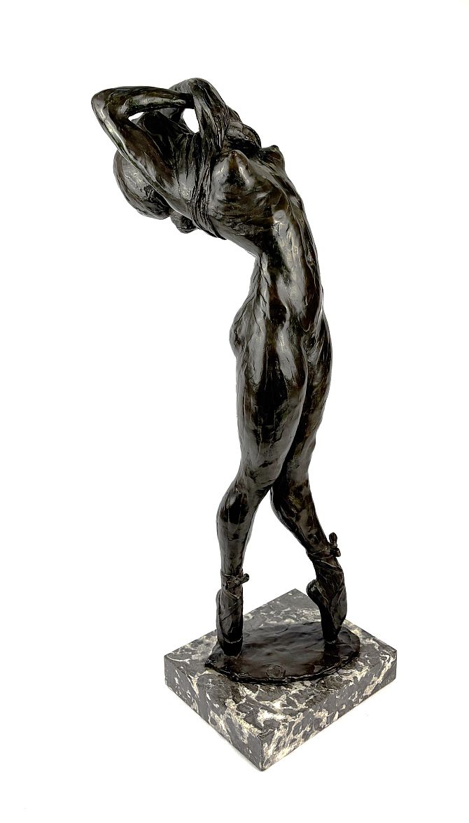 Enzo Plazotta (Italian, 1921-1981), 'Dancer Undressing', limited edition bronze figure number 8/9, with foundry stamp, raised on plinth base, combined height 65cm.