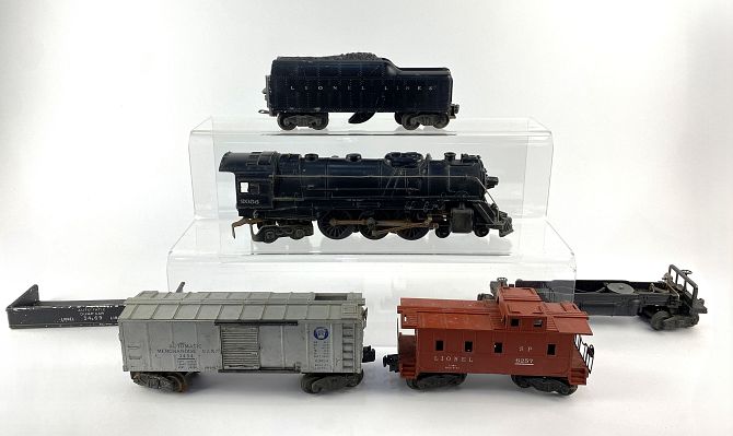 A Lionel Corporation model railway locomotive, together with four rolling stock, together with provenance regarding the previous owner *this lot is being sold in aid of St Wilfrid's Hospice