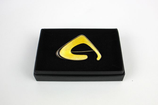 An Ivor T. Holth Norwegian silver gilt and yellow enamelled brooch, of modernist design, variously marked 925S Norway and Sterling, width 4.2cm, 6.1g