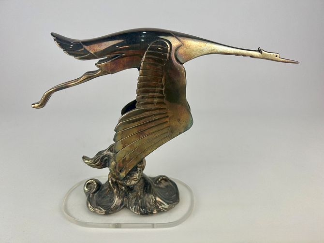 Car mascot / hood ornament: 'Flying Bird', for Peugeot, moulded glass on a silve...