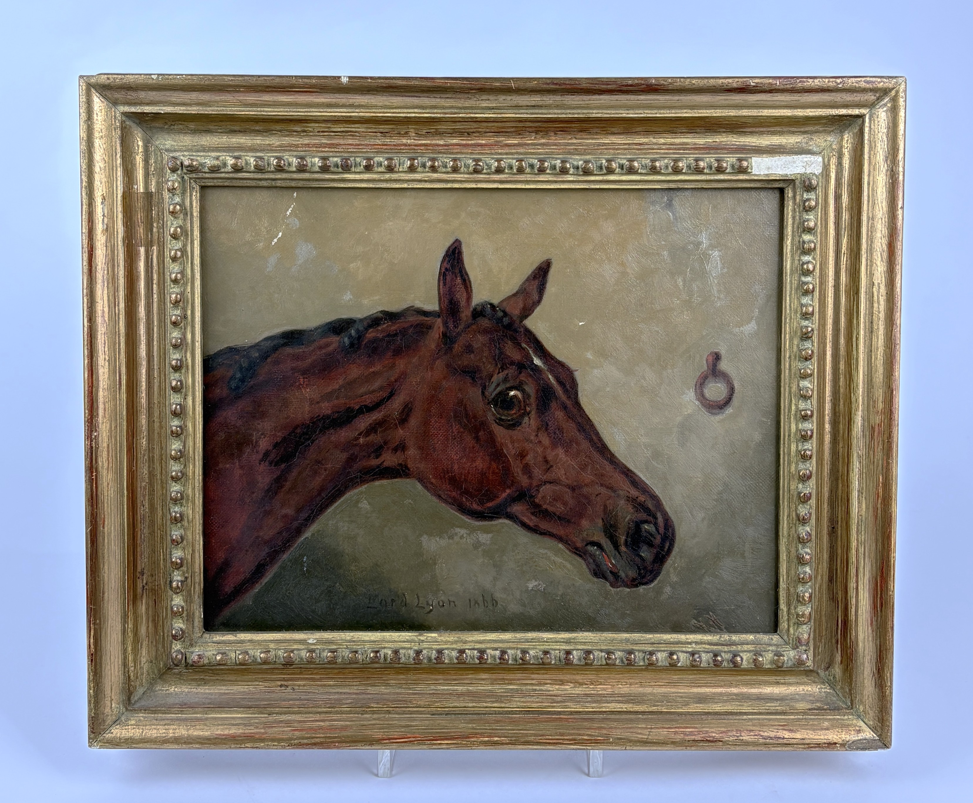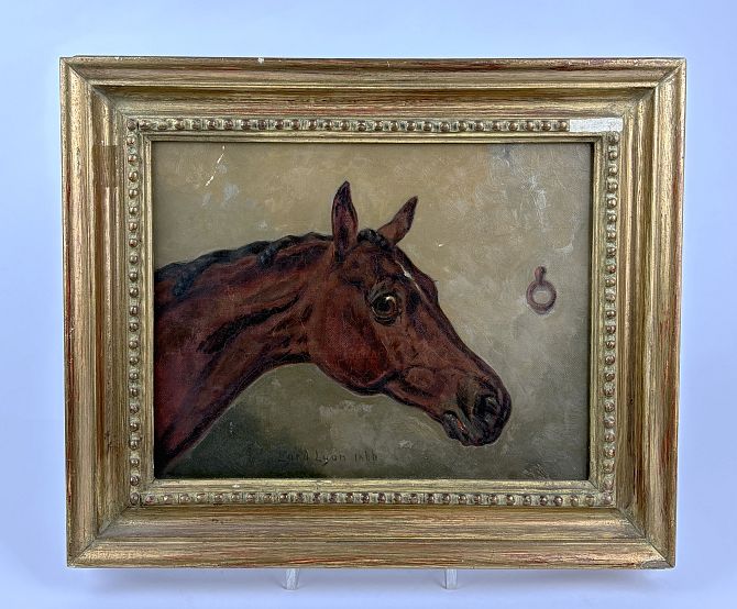 Harry Hall (British, 1815 - 1882), 'Lord Lyon' (study of a horses head), oil on canvas, signed with initials, dated 1866, titled, 19cm by 25cm, framed, (chip to frame).